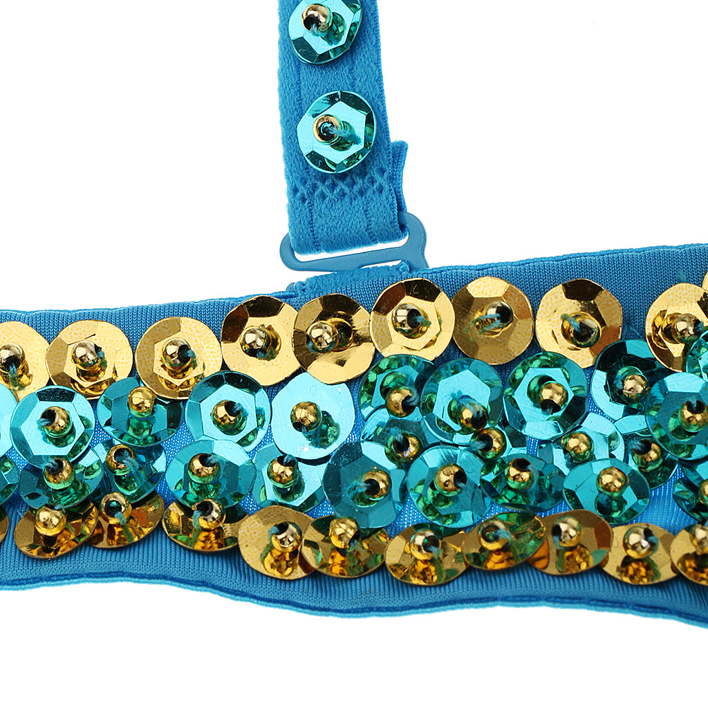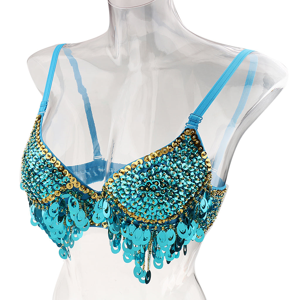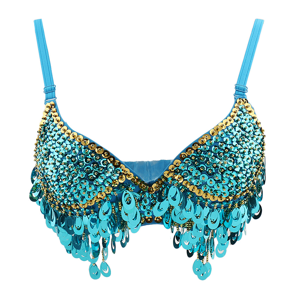 Maxbell Maxbell Belly Dance Beaded Bra Sequins Top Sexy Dancing Singer Costume Tassels Blue