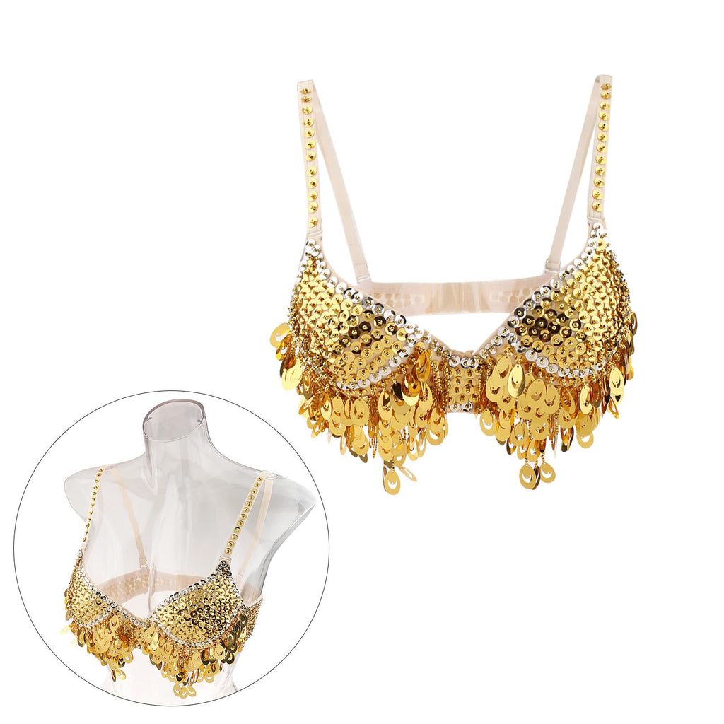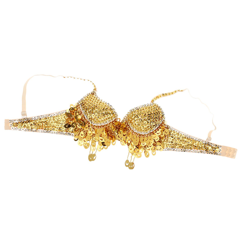 Maxbell Maxbell Belly Dance Beaded Bra Sequins Top Sexy Dancing Singer Costume Tassels Gold