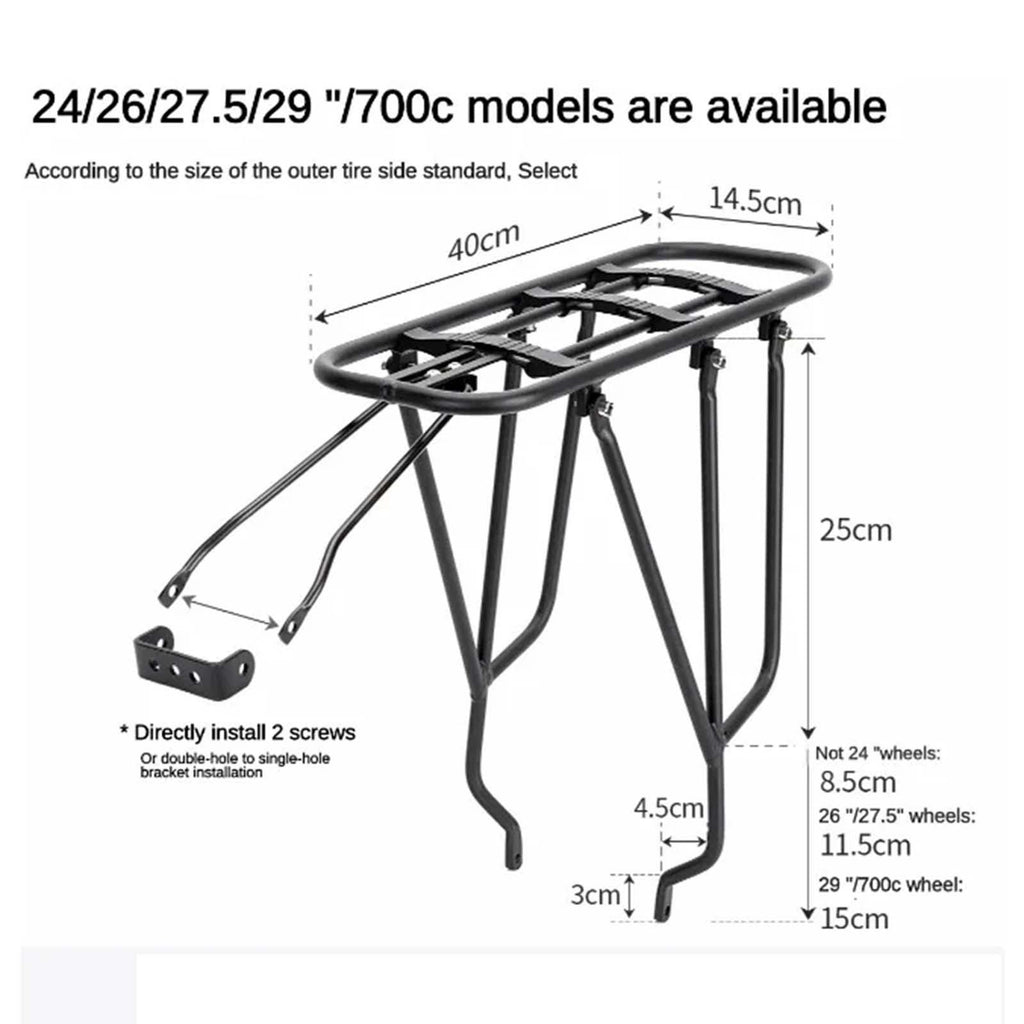 - 【Widely Used】: The bike cargo rack is suitable for most bikes, long distance travel, or daily commuting. such as mountain bikes, and road bikes.
