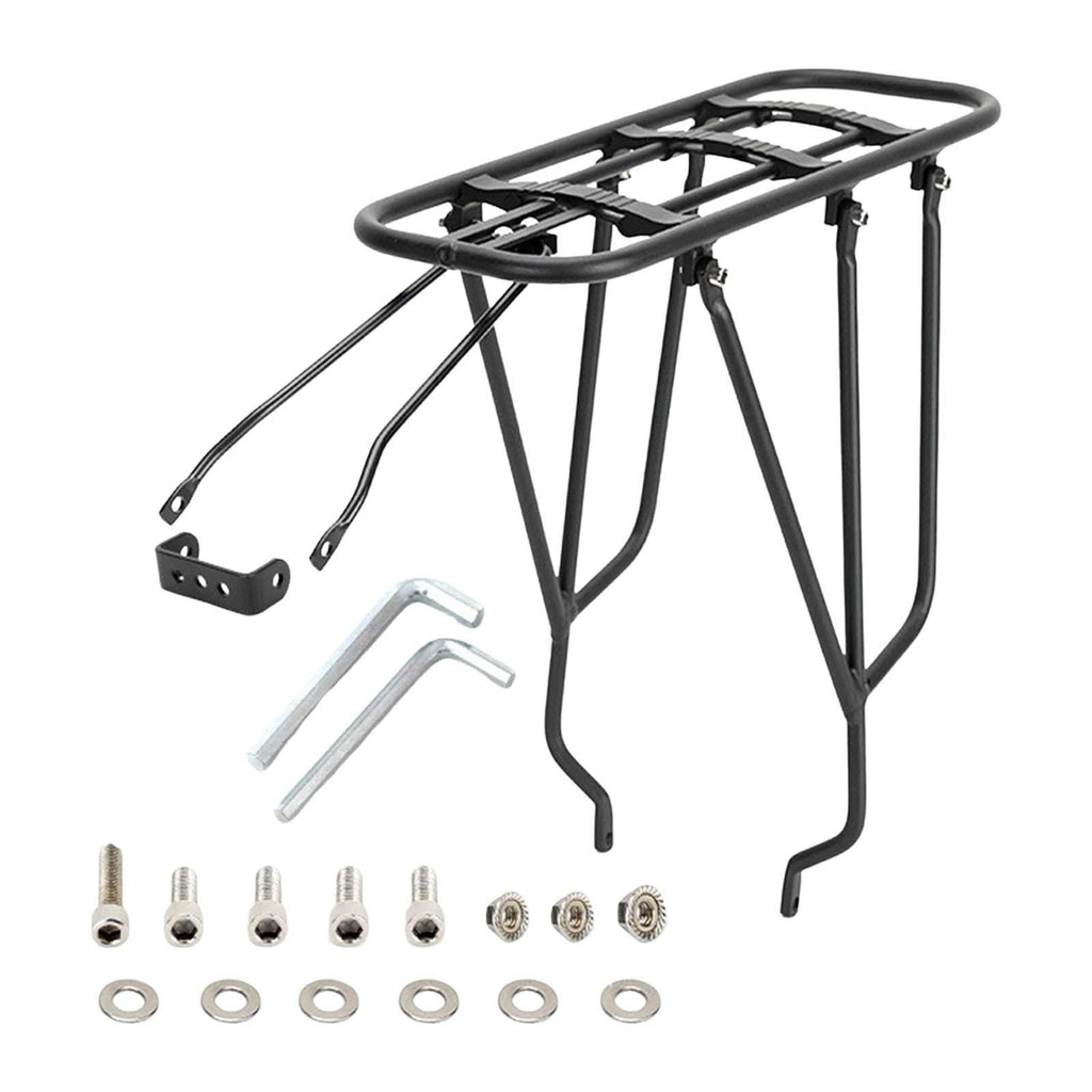 - 【Professional】: The rear bike rack is suitable for long distance touring, panniers, backpacks, baskets, luggage, briefcase, trunk bags, and more.