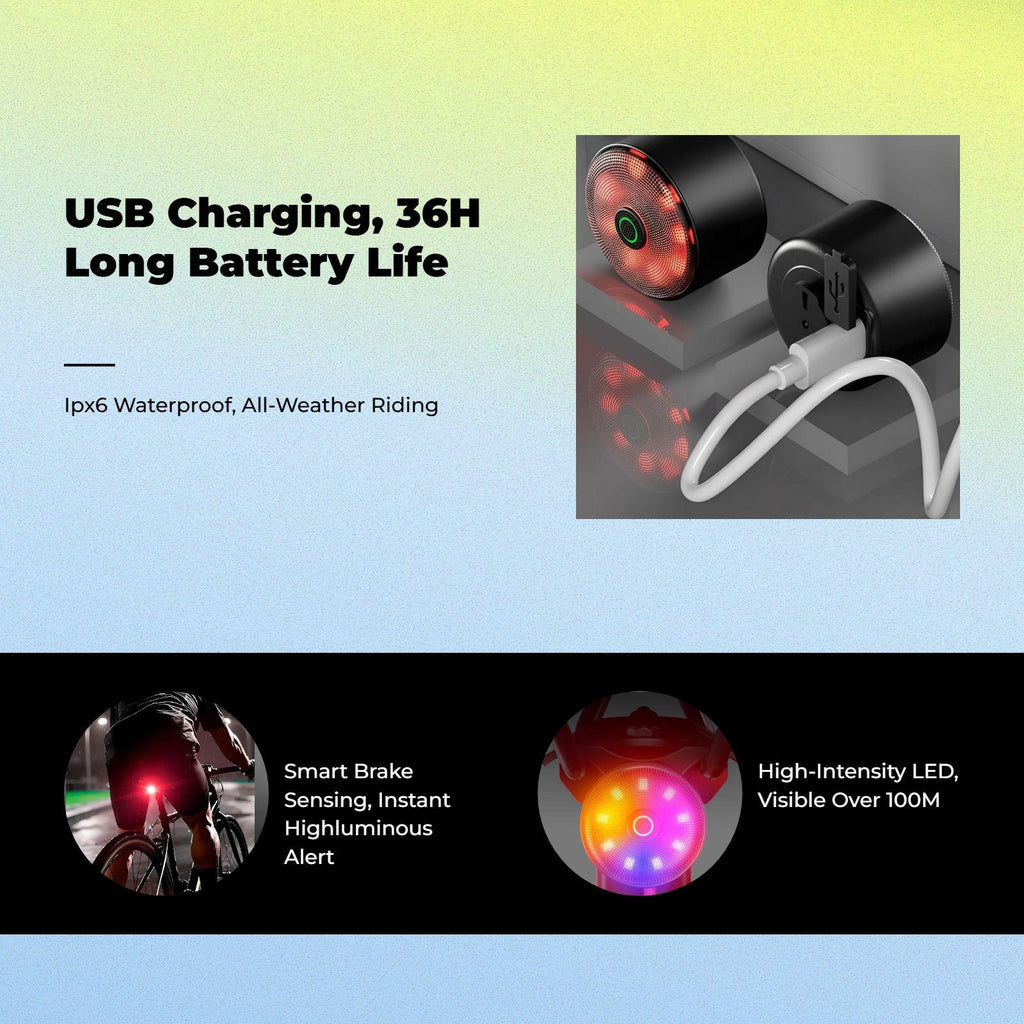 [Smart Bike for Night Riding] This extra-brilliant bike light features sophisticated brake sensing and ambient light detection technology, ensuring optimal visibility and during night rides, awaypath biking, and urban cycling. [universal serial bus Rechargeable & Fast Charging] Equipped with a built-in battery and a universal serial bus-C charging port, this bike supports rapid charging and awayers long performance, making it perfect for common commuting and outdoor activities. [Multiple Lighting Modes & Auto Shutdown] Select from various lighting modes, including flashing, steady, and breathing modes. The automatic shut-away function adjusts to low light conditions and boosts visibility in foggy, rainy, or snowy weather. [Easy Installation sturdy Material] Crafted from high-quality PC, this waterproof light is simple to install on seat rails or posts and is suitable for mountain, street, or urban bikes. [dependable Cycling Accessory] Engineered for enhanced safety, this powerful rear light is a must-have accessory for cyclists who value performance and reliability.