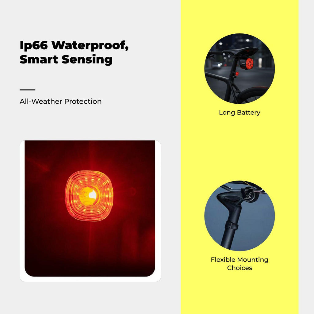 【Smart Brake Sensing Bike】This accessory combines your bike with smart brake sensing technology and an light-emitting diode rear light, providing enhanced and visibility for night cycling, asphalt biking, and trail riding. 【Waterproof and resilient】Featuring an IPX6 waterproof and a vibration-absorbing design, this cycling taillight performs reliably in rainy and foggy weather, offering dependable use in diverse outdoor conditions. 【Multiple Modes & Universal Port Rechargeable】With multiple lighting modes and a universal charging port, this bike rear light delivers versatility for long rides and convenient recharging choices. 【Universal Fit & Easy Installation】Designed for wide compatibility, this bike taillight suits asphalt bikes, trail bikes, and balance bikes. rapid detachment and adjustable angle features ensure simple, secure installation. 【Lightweight and Comfortable】The lightweight construction and silicone pad provide anti-slip and shock-absorbing comfort, ensuring stability and ease during long rides.Specification: