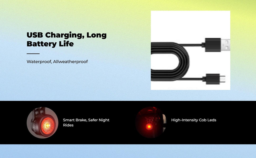 Bike, Smart Brake, universal serial bus-C Rechargeable, Waterproof, Night Riding Colorful W7S