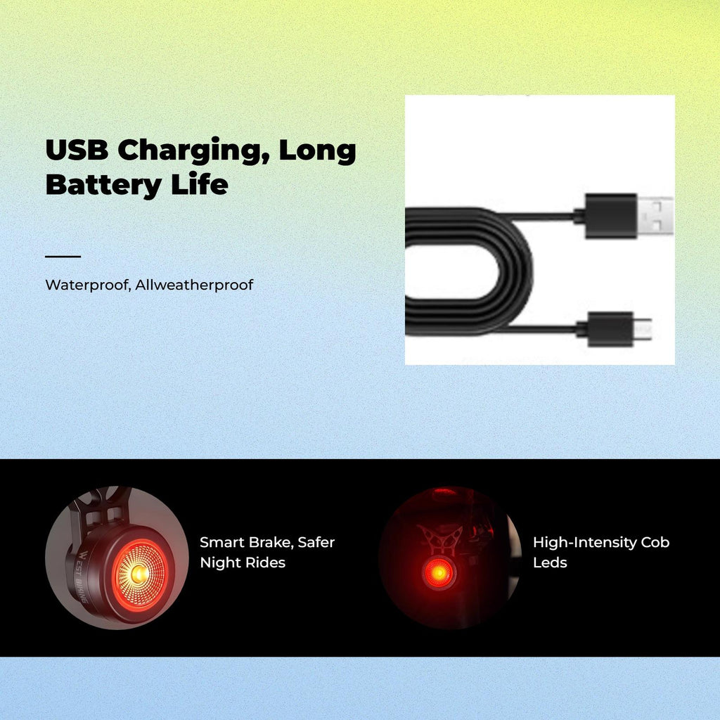 Bike, Smart Brake, universal serial bus-C Rechargeable, Waterproof, Night Riding Red W1
