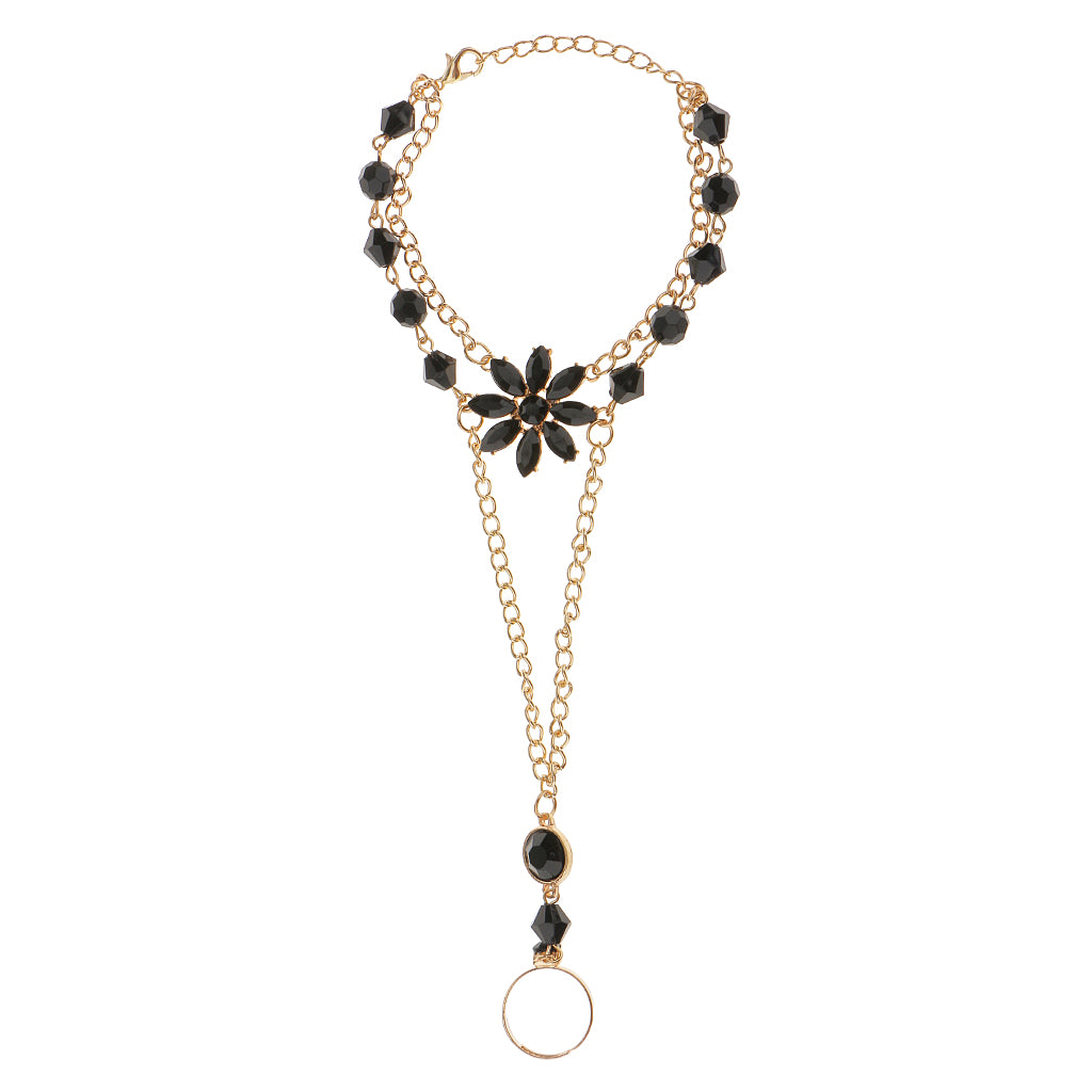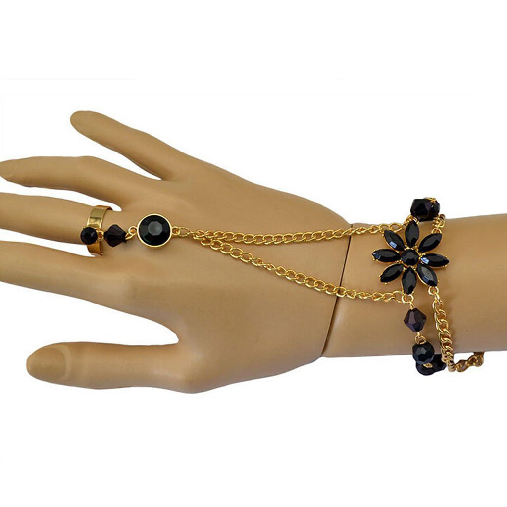 Maxbell Black Acrylic Bracelet Bangle Slave Chain Link Finger Ring Hand Harness Gold
