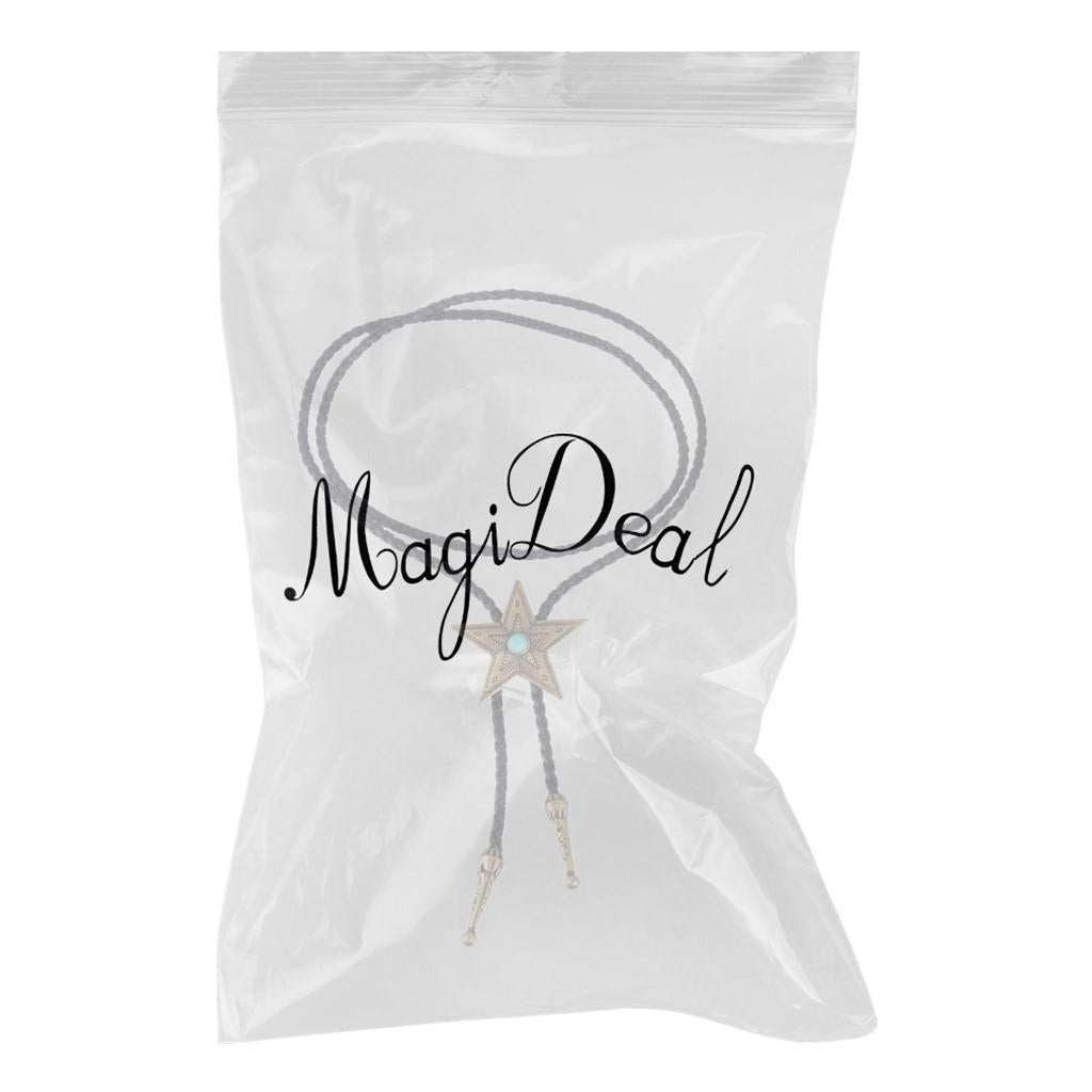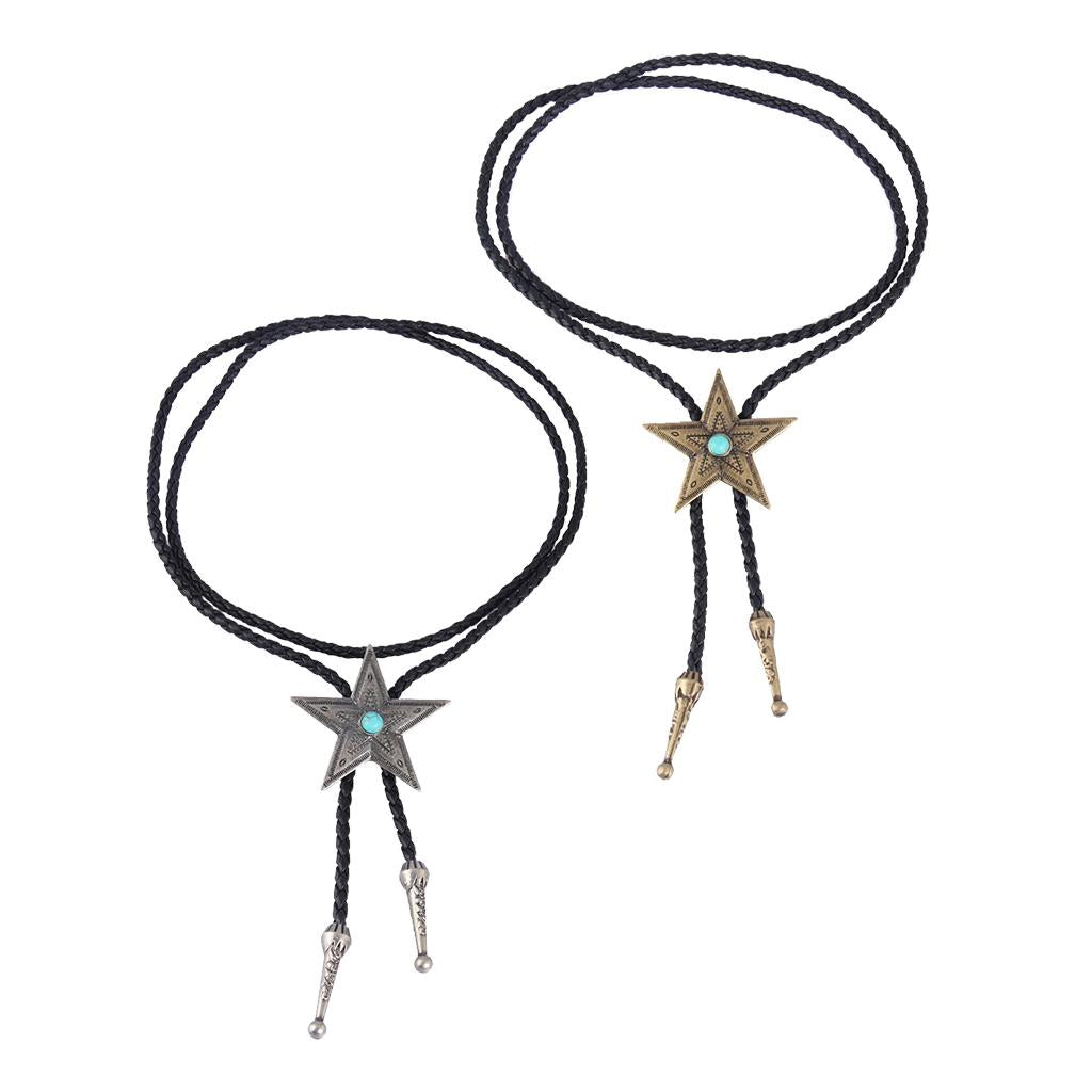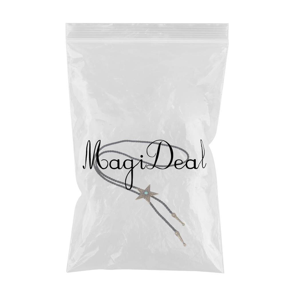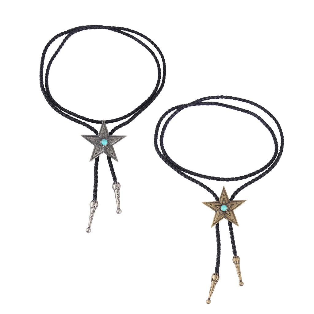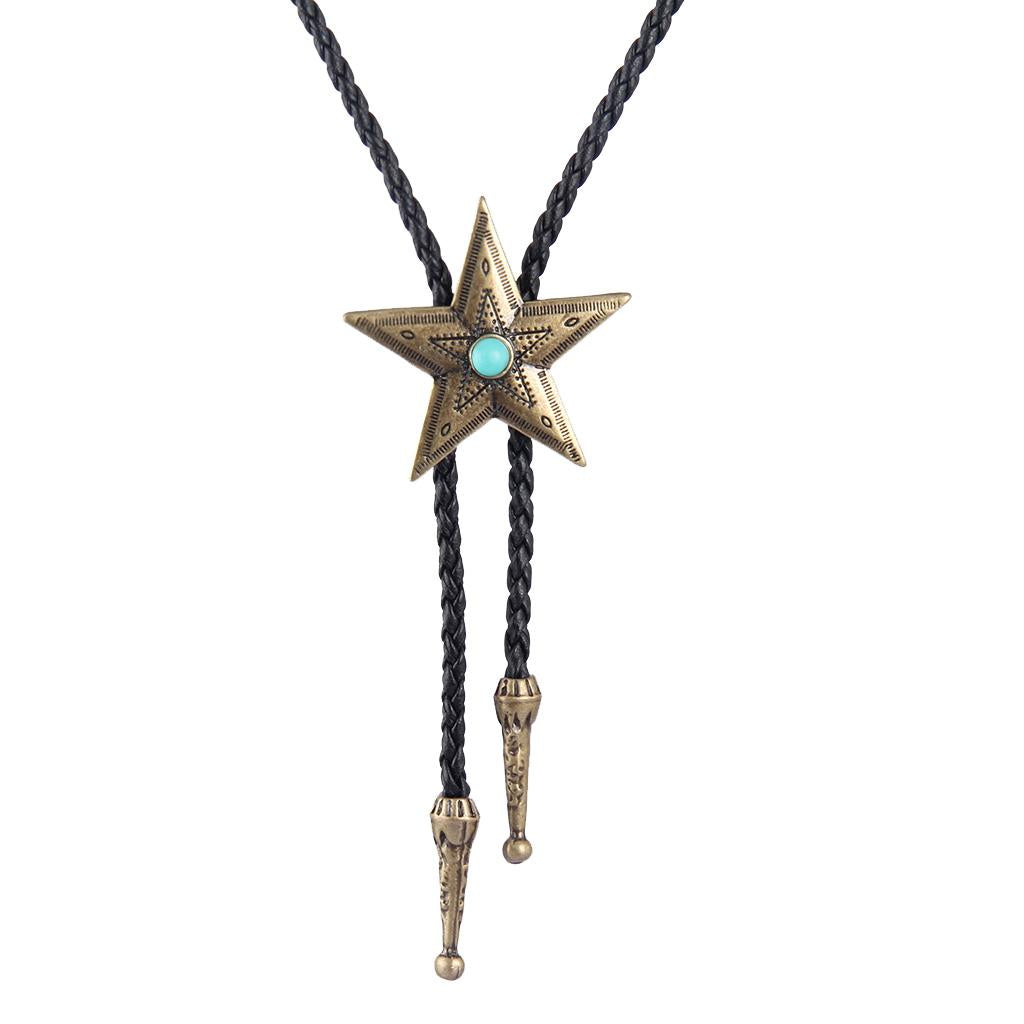 Maxbell Black PU Leather Western Cowboy Rodeo Bolo Tie Bola Necklace Antique Brass