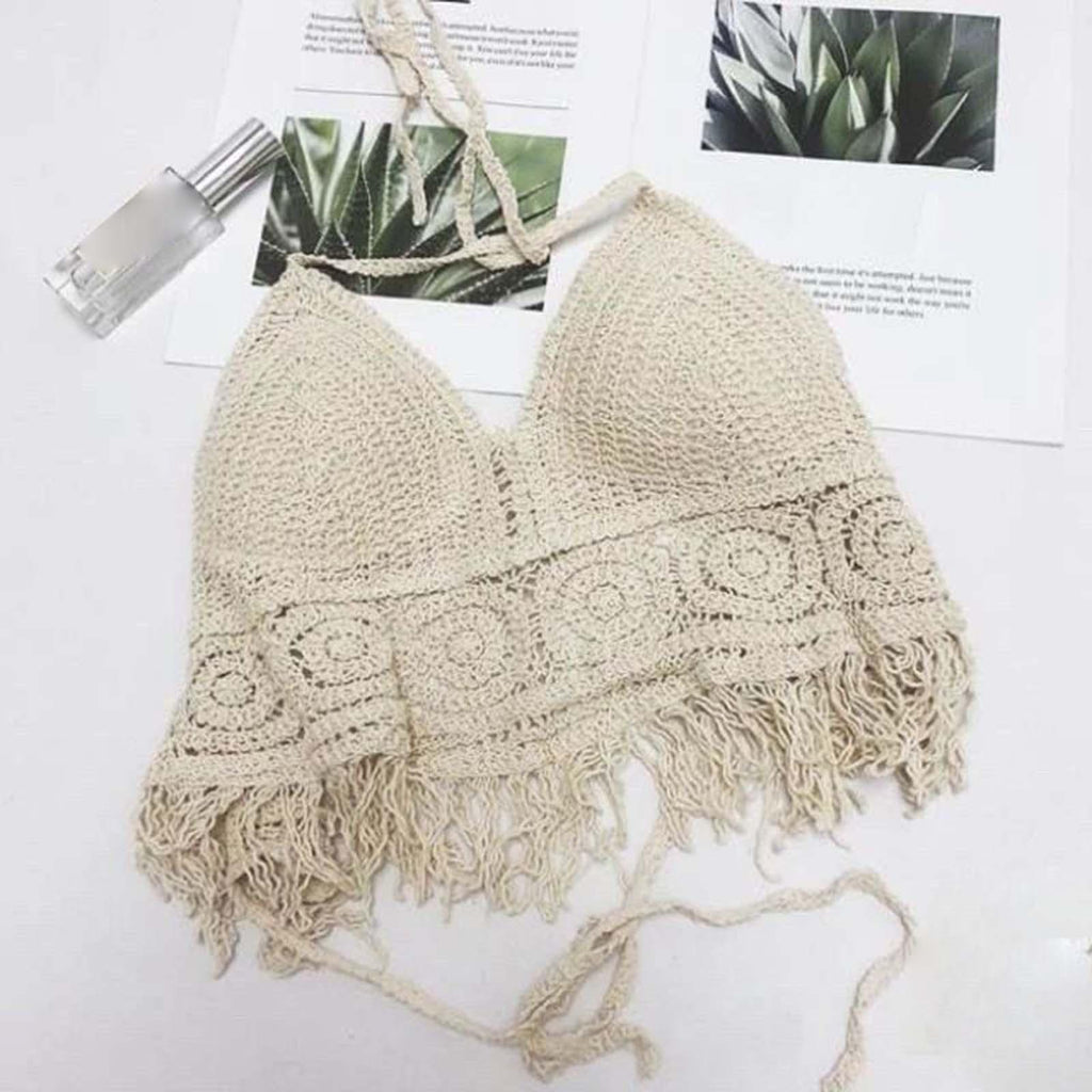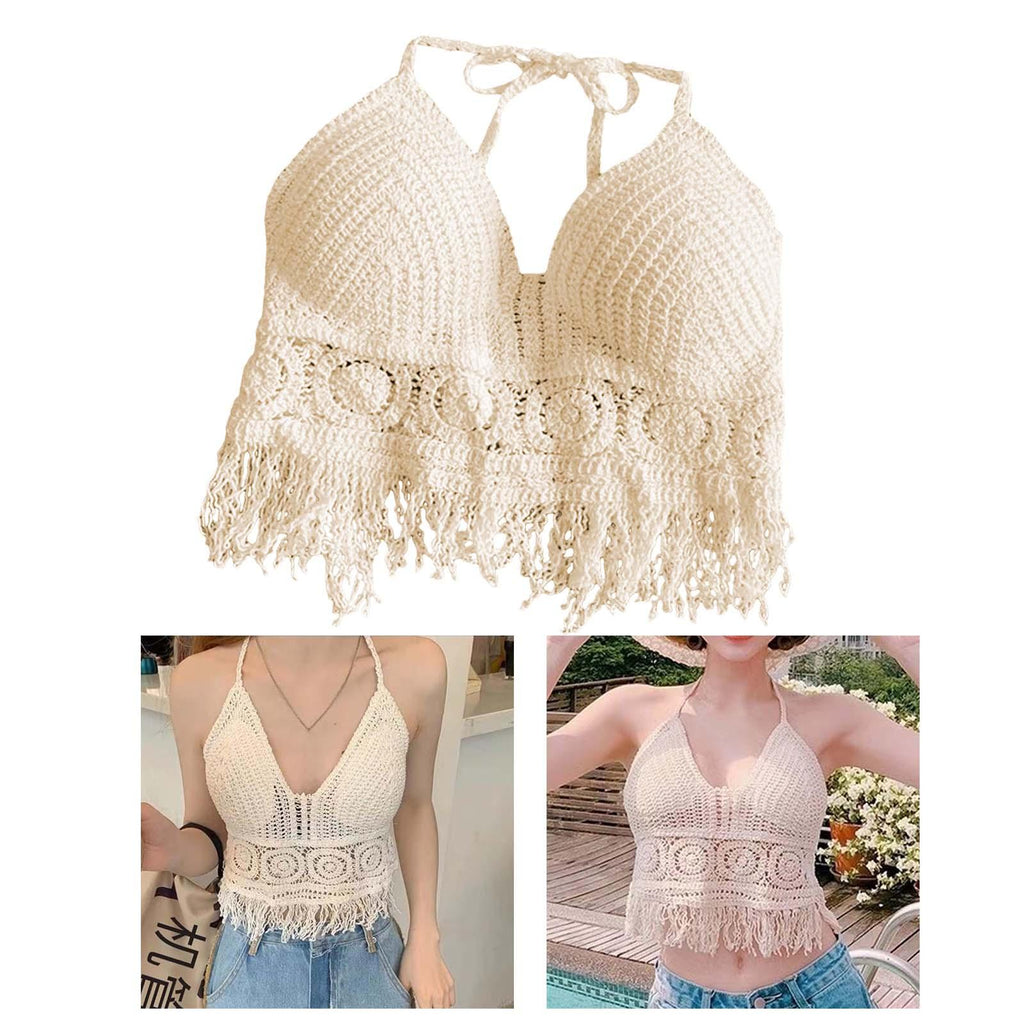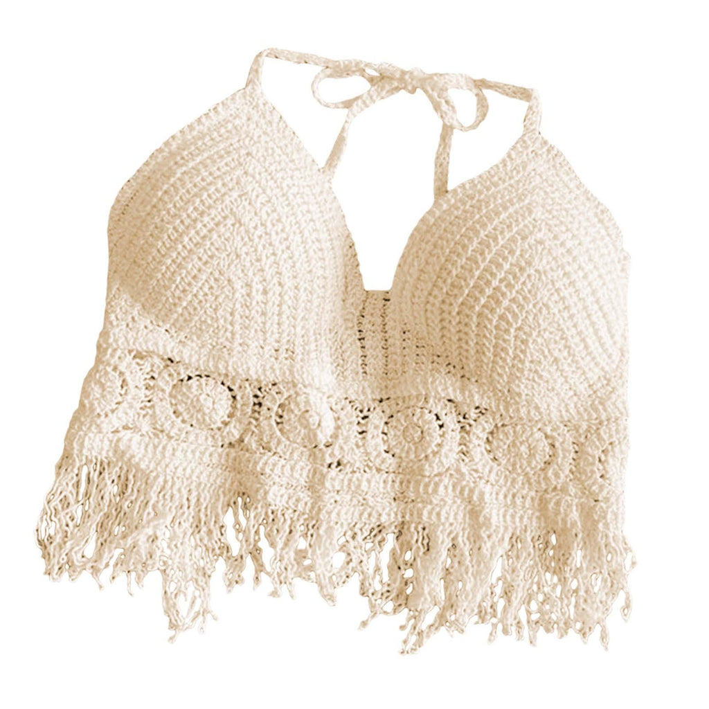 Maxbell Bohemia Crop Top Corset Vest Hollow Out Tank Camis Bralette for Women Rave 37cmx26cm Beige