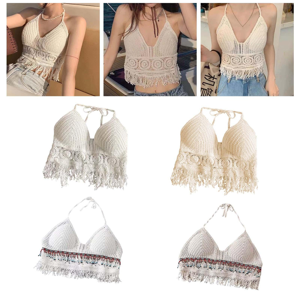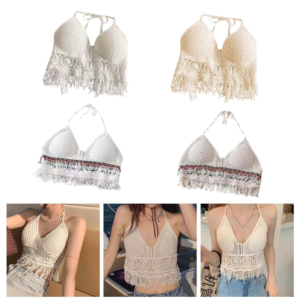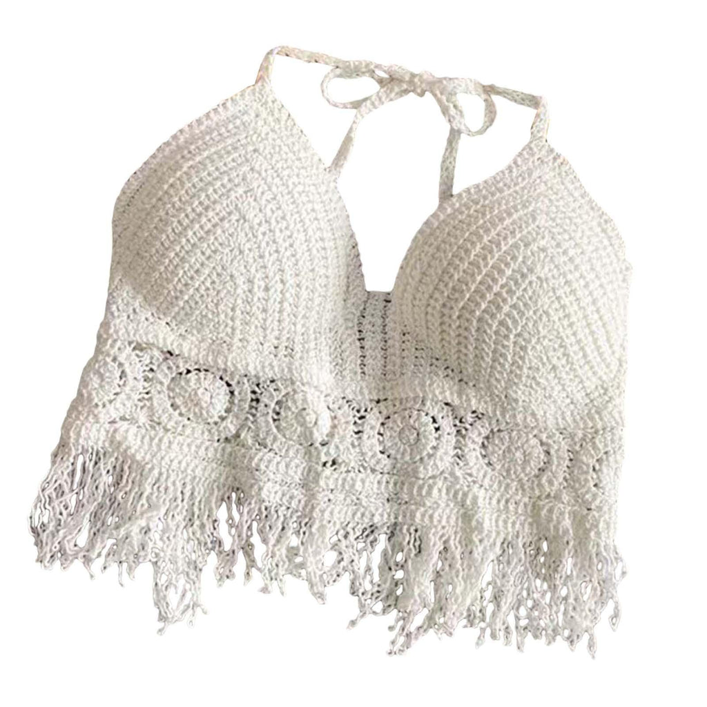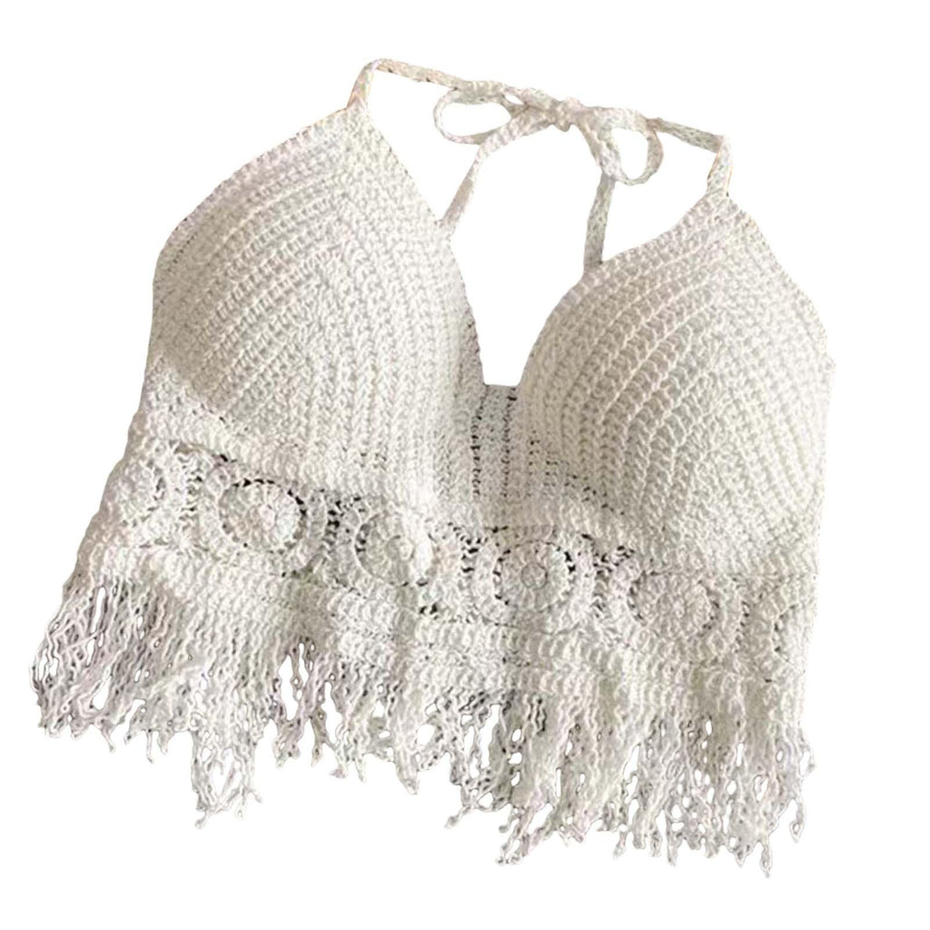 Maxbell Bohemia Crop Top Corset Vest Hollow Out Tank Camis Bralette for Women Rave 37cmx26cm White