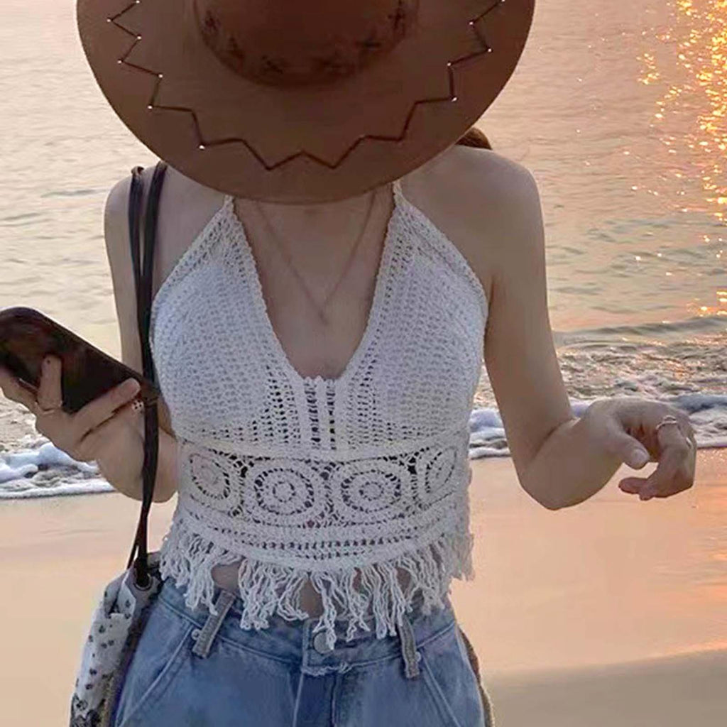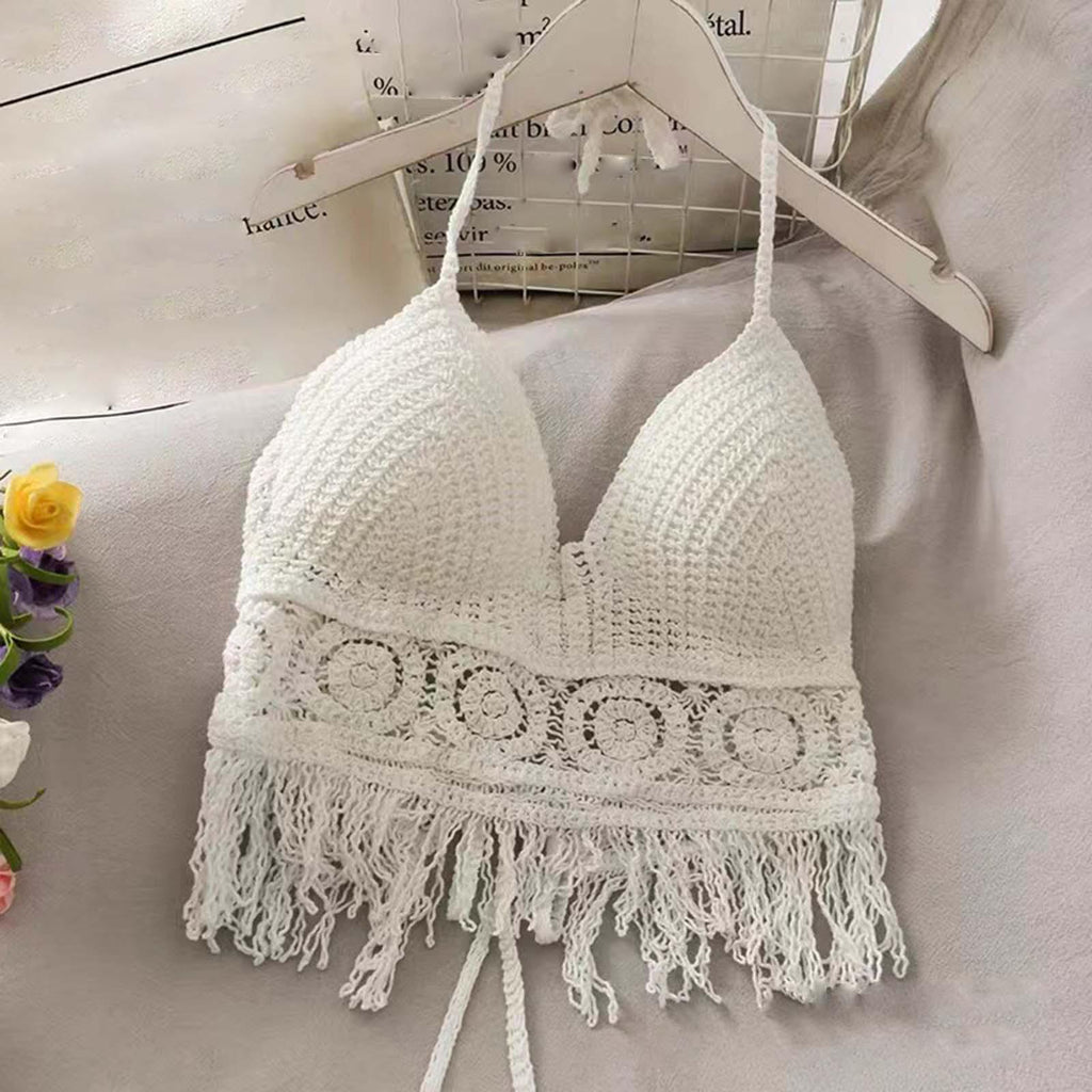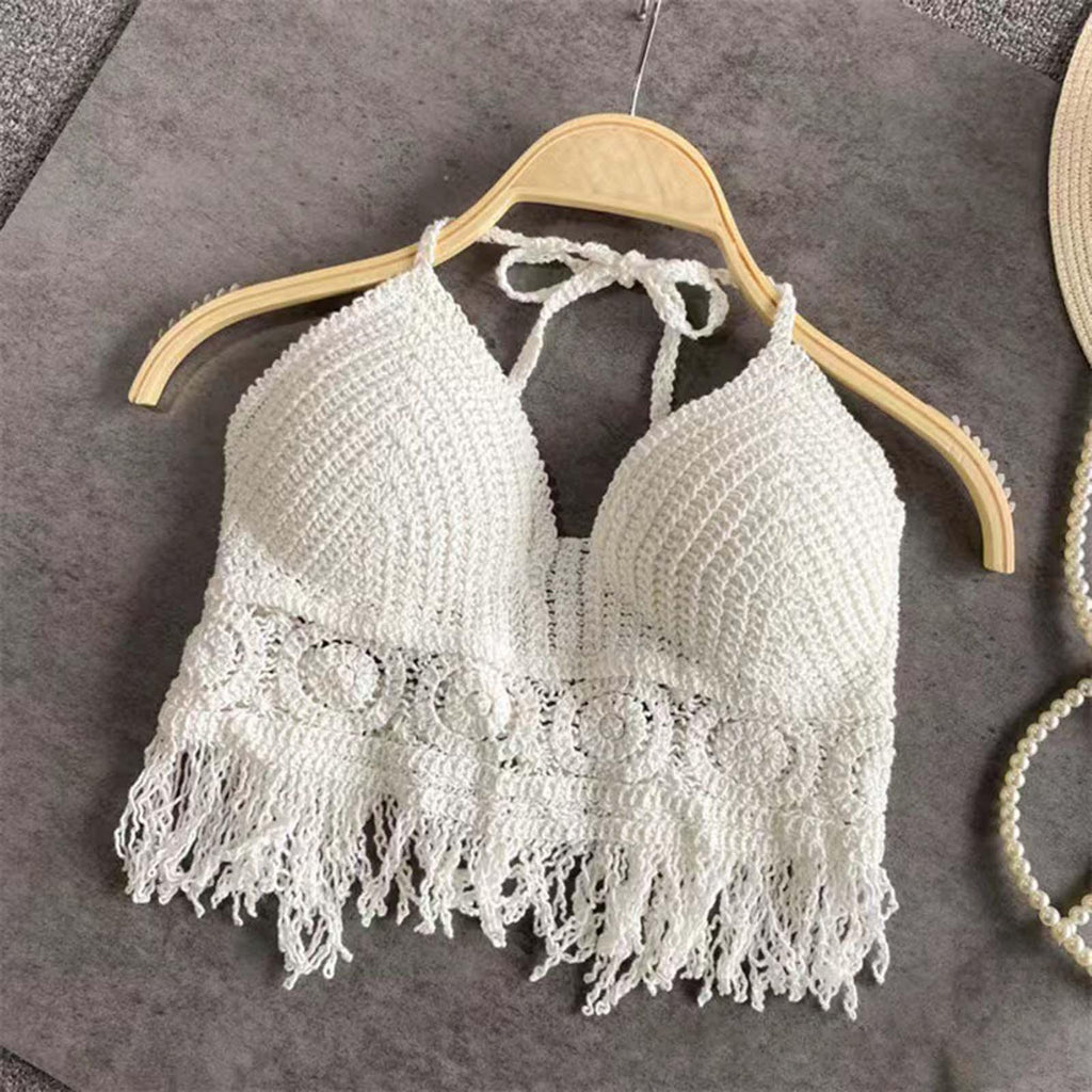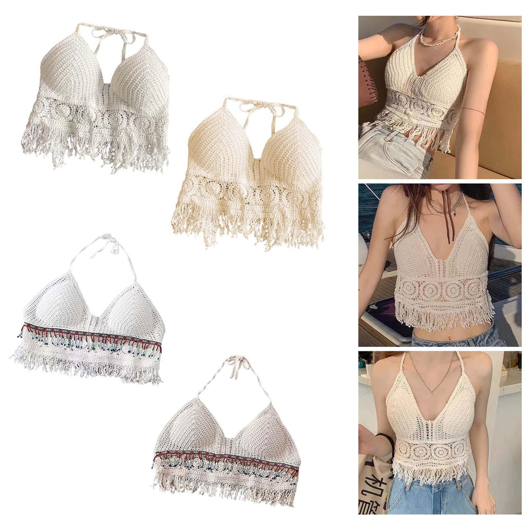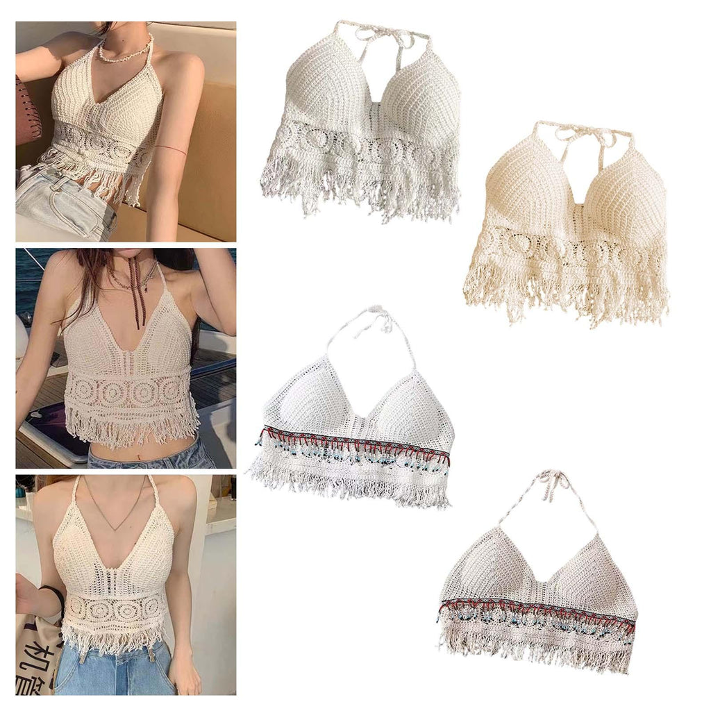Maxbell Bohemia Crop Top Corset Vest Hollow Out Tank Camis Bralette for Women Rave 37cmx26cm White