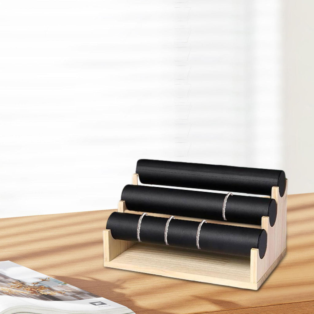 【Material】: 3 Tiers Bracelet Display Stand is crafted from wood and PU material, protects your jewelry from any scratches or abrasions