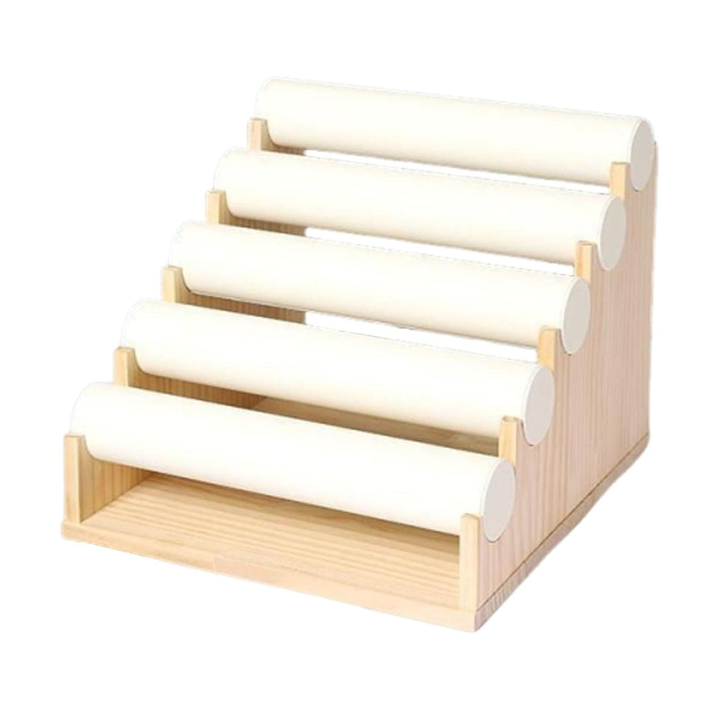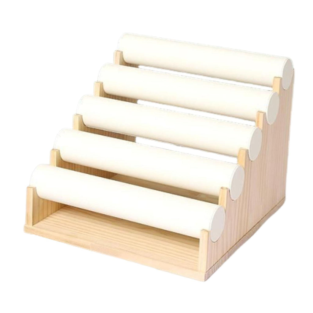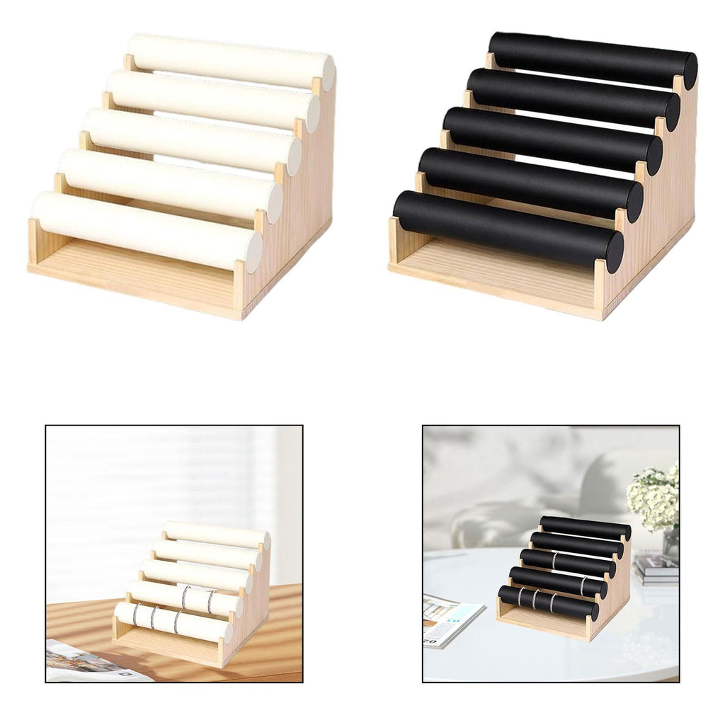 【Material】: 5 Tiers Bracelet Display Stand is crafted from wood and PU material, protects your jewelry from any scratches or abrasions