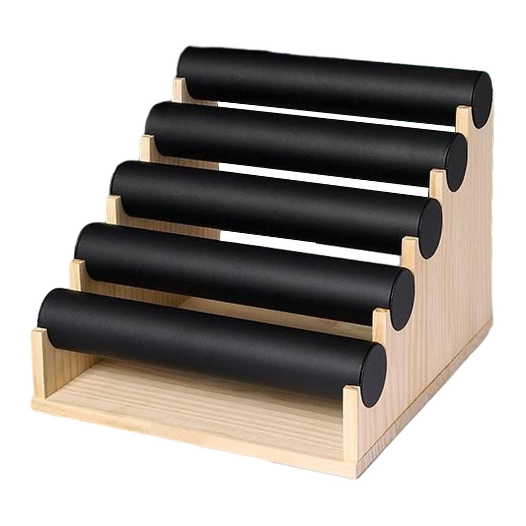 【Material】: 5 Tiers Bracelet Display Stand is crafted from wood and PU material, protects your jewelry from any scratches or abrasions