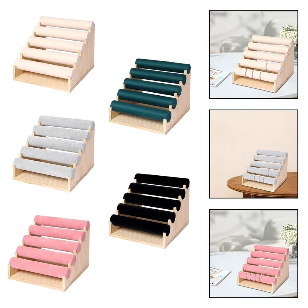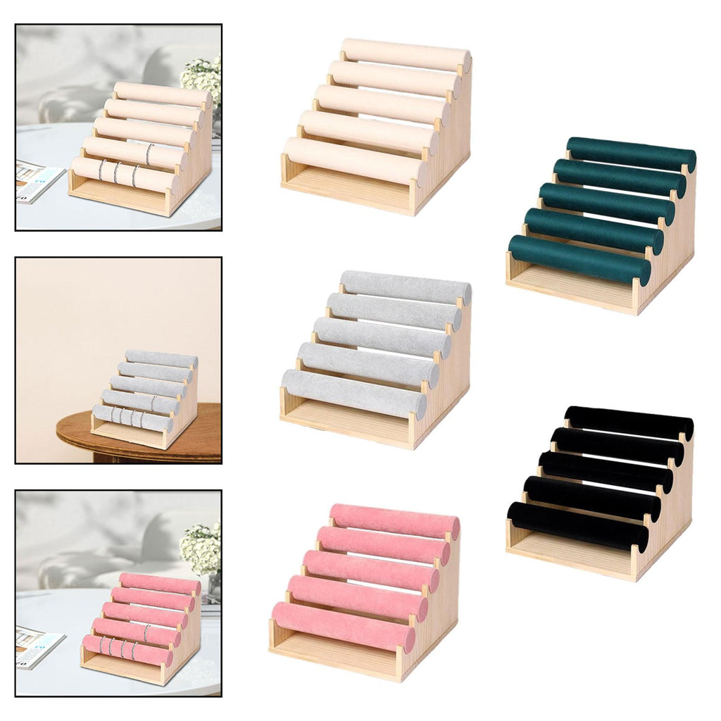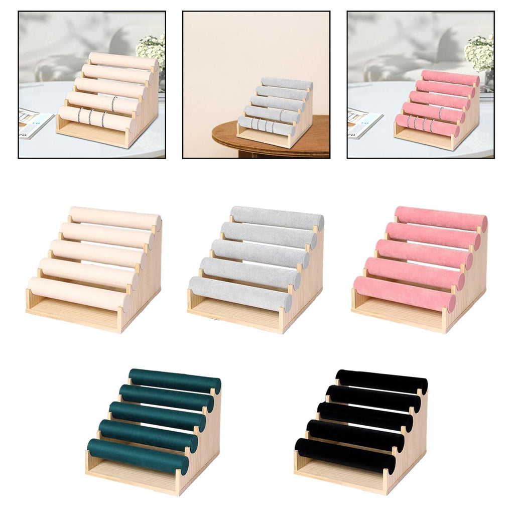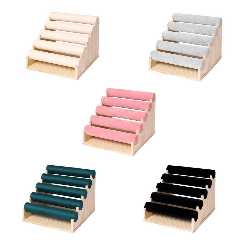 【Material】: 5 Tiers Bracelet Display Stand is crafted from wood and velvet material, protects your jewelry from any scratches or abrasions