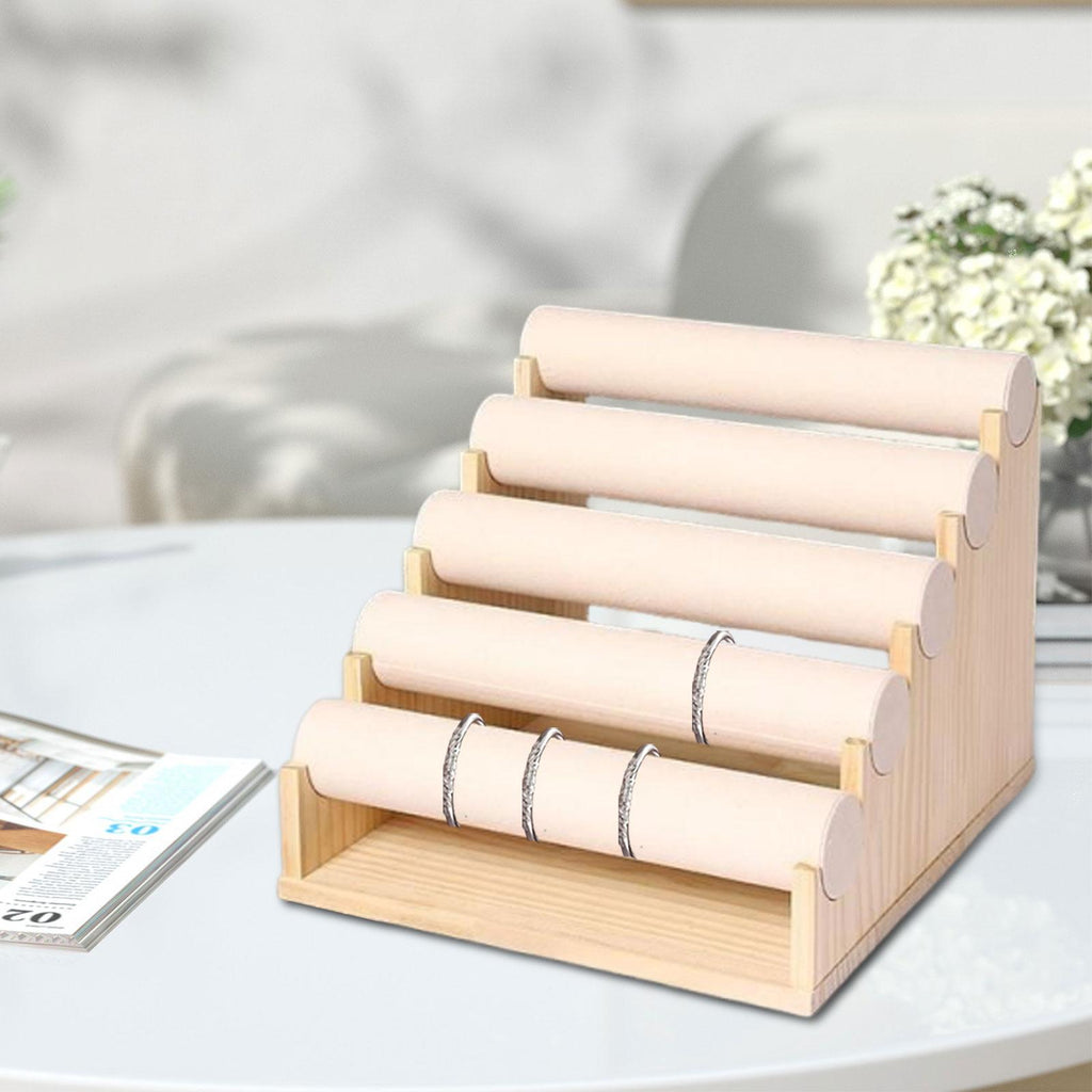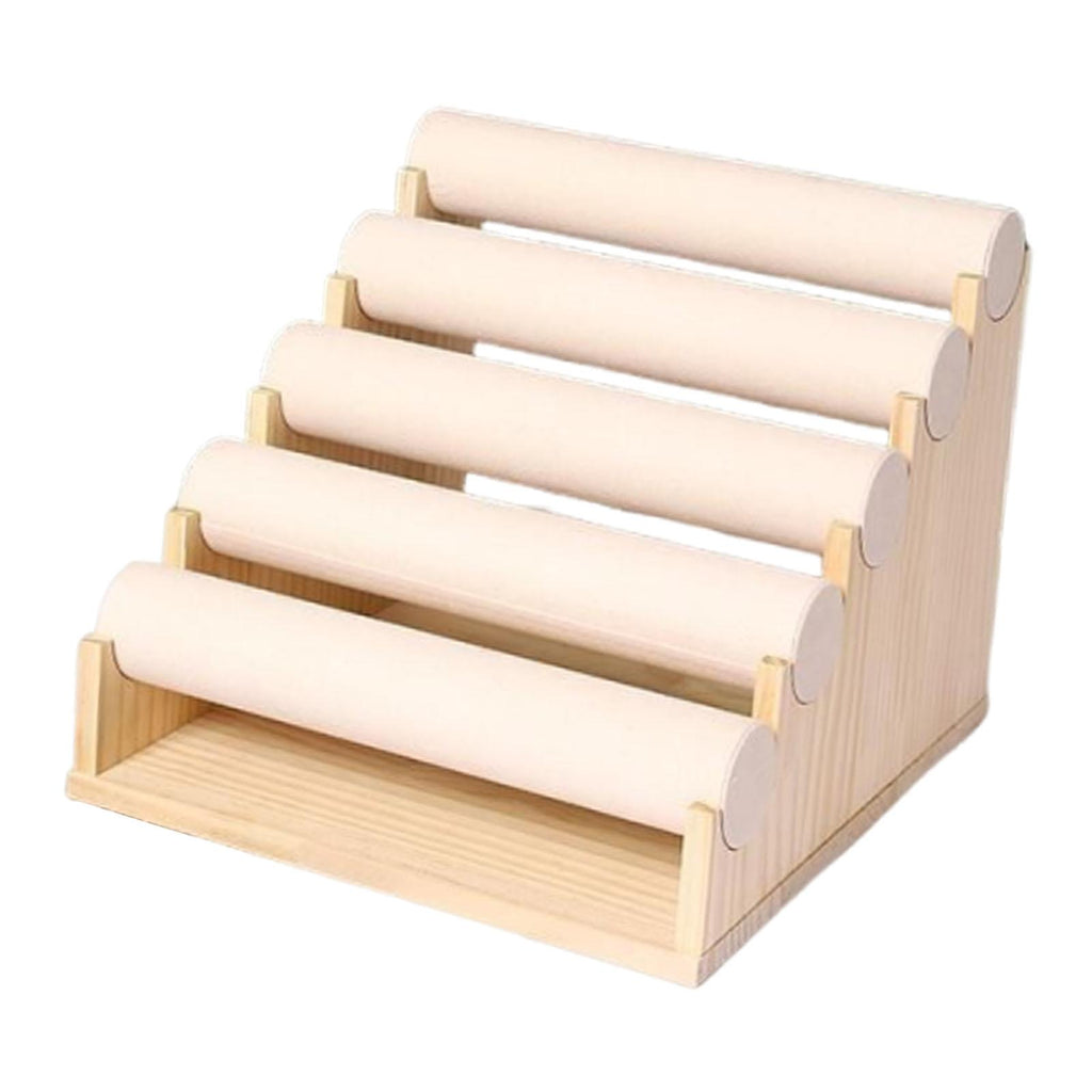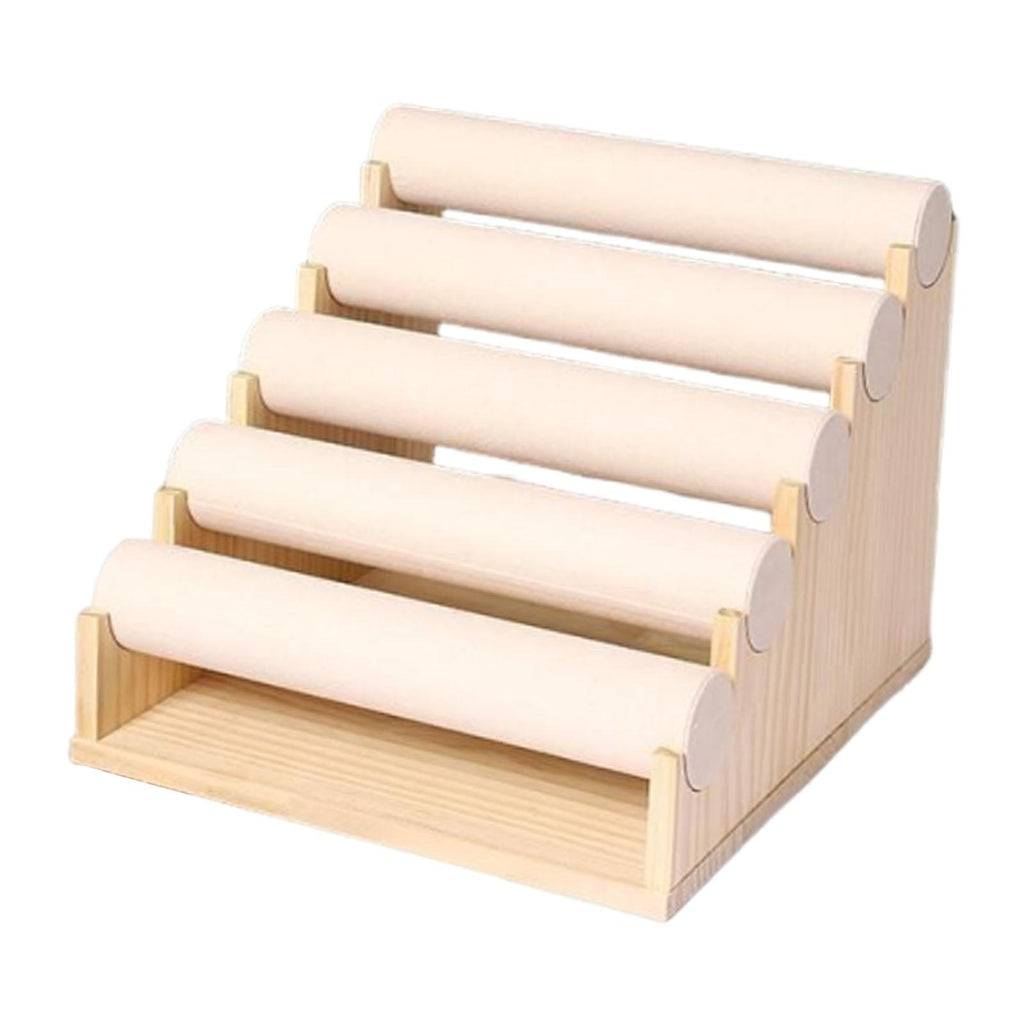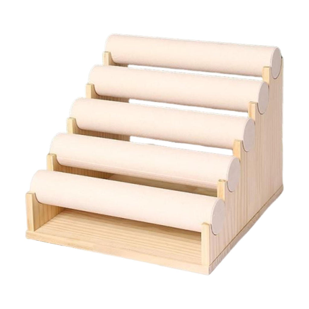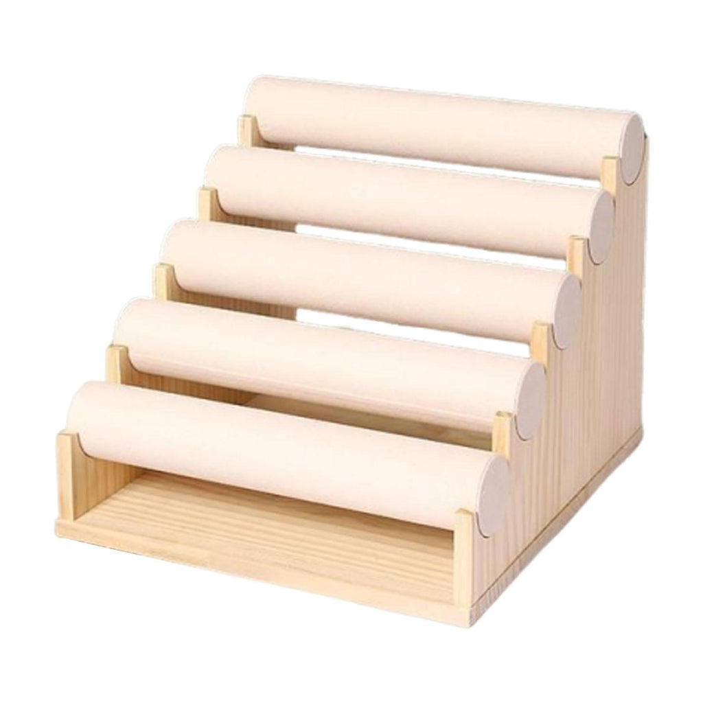 【Material】: 5 Tiers Bracelet Display Stand is crafted from wood and velvet material, protects your jewelry from any scratches or abrasions