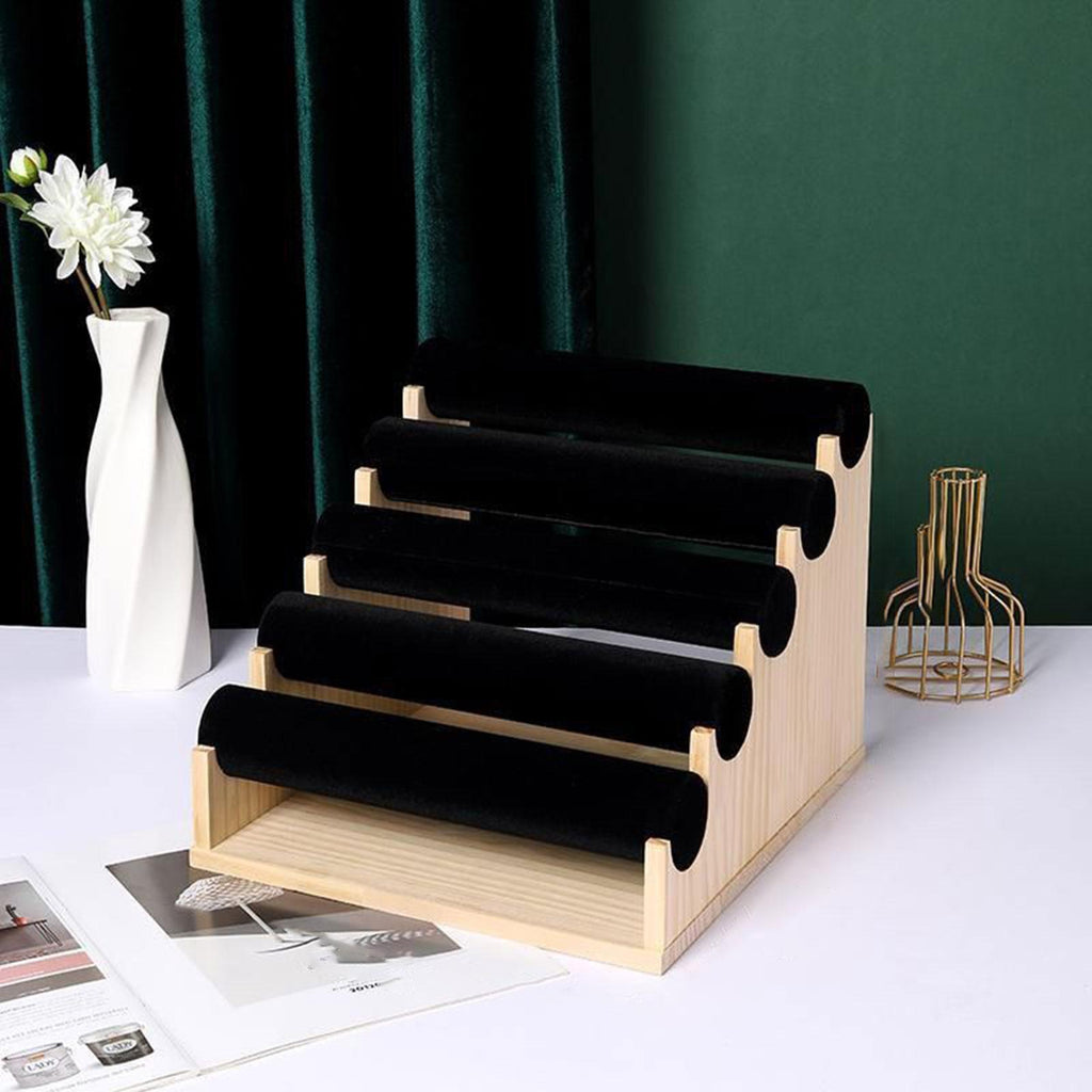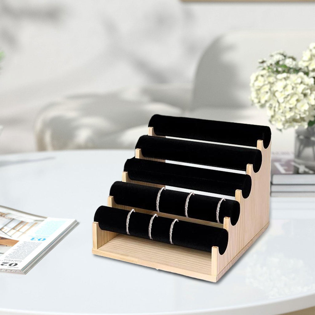 【Material】: 5 Tiers Bracelet Display Stand is crafted from wood and velvet material, protects your jewelry from any scratches or abrasions
