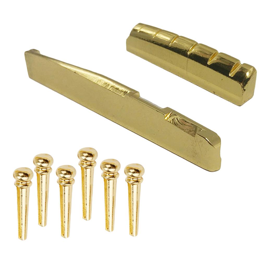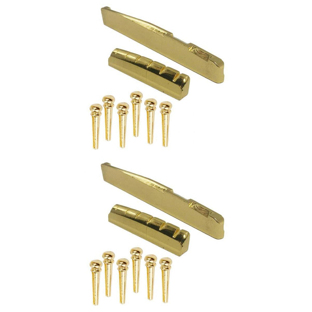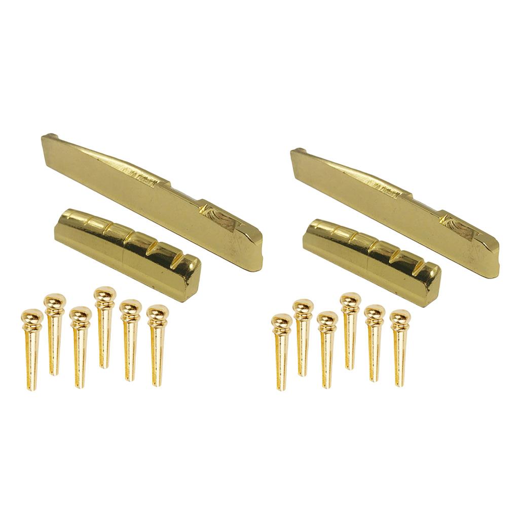 2 Set Brass Acoustic Guitar Nuts Saddles Bridge Pins