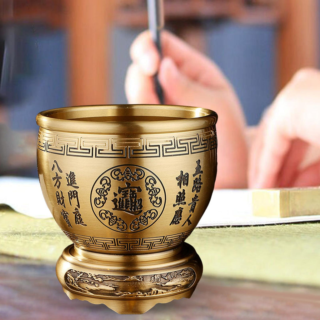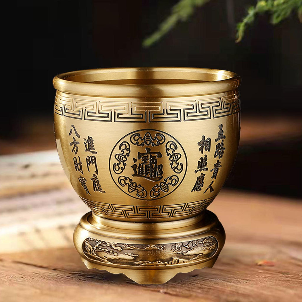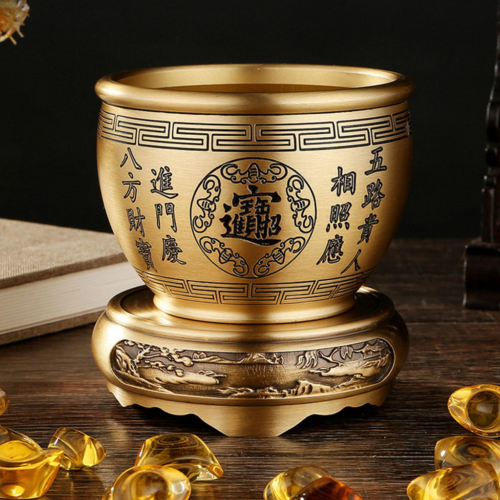 Maxbell Maxbell Brass Feng Shui Bowl Gift Desk Money Bank Statue Figurine Treasure Basin With Base Stand
