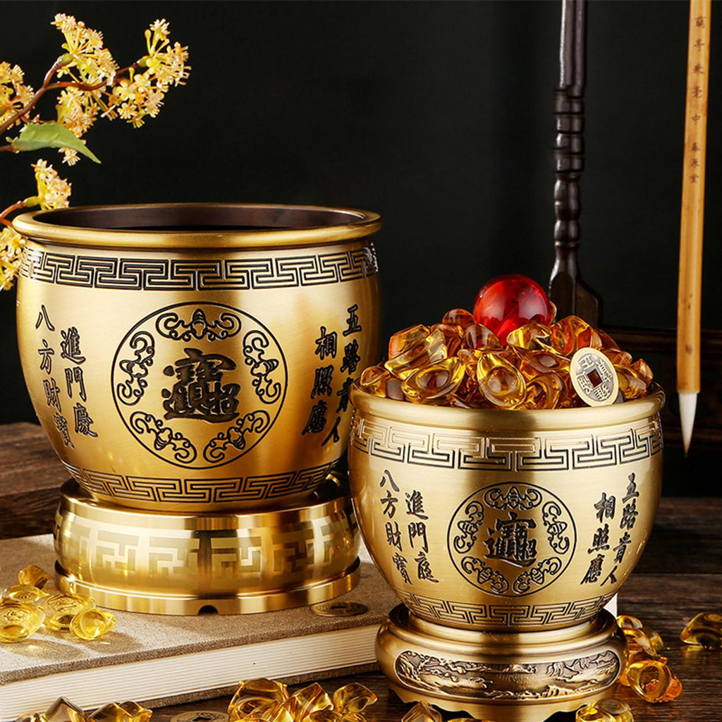 Maxbell Maxbell Brass Feng Shui Bowl Sculpture Treasure Basin Dining Room Cornucopia Decors With Base Stand