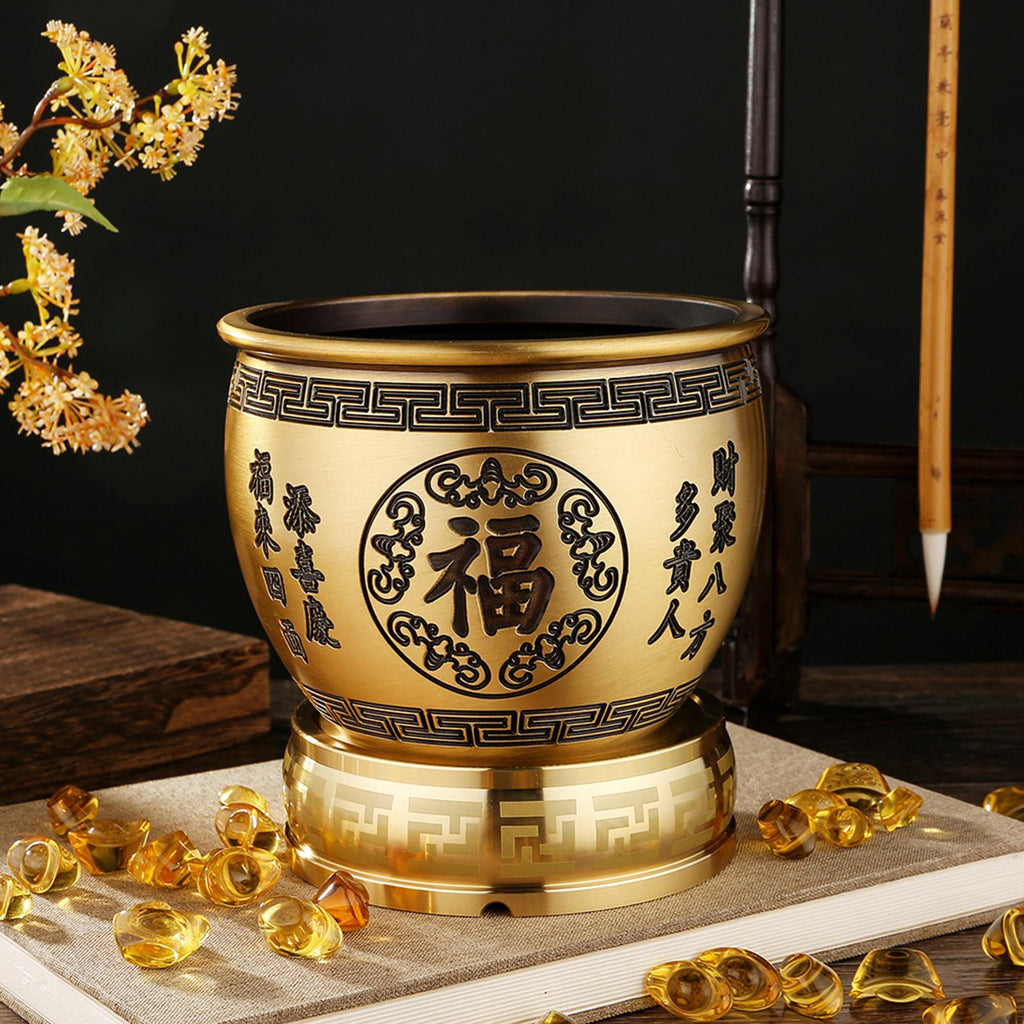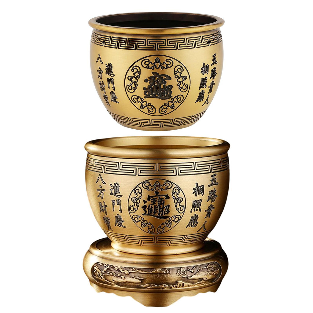 - TRADITIONAL DECOR: Chinese style brass cylinder bowl. Exquisite details, add artistic flavor to your interior decoration.