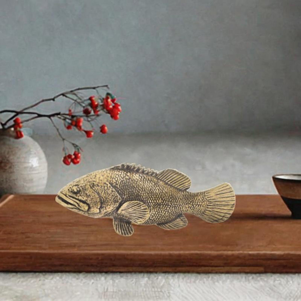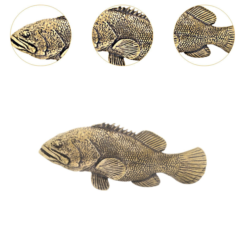 Maxbell Brass Grouper Fish Figurine Tea Pet Animals Figurine for Home Office Desktop