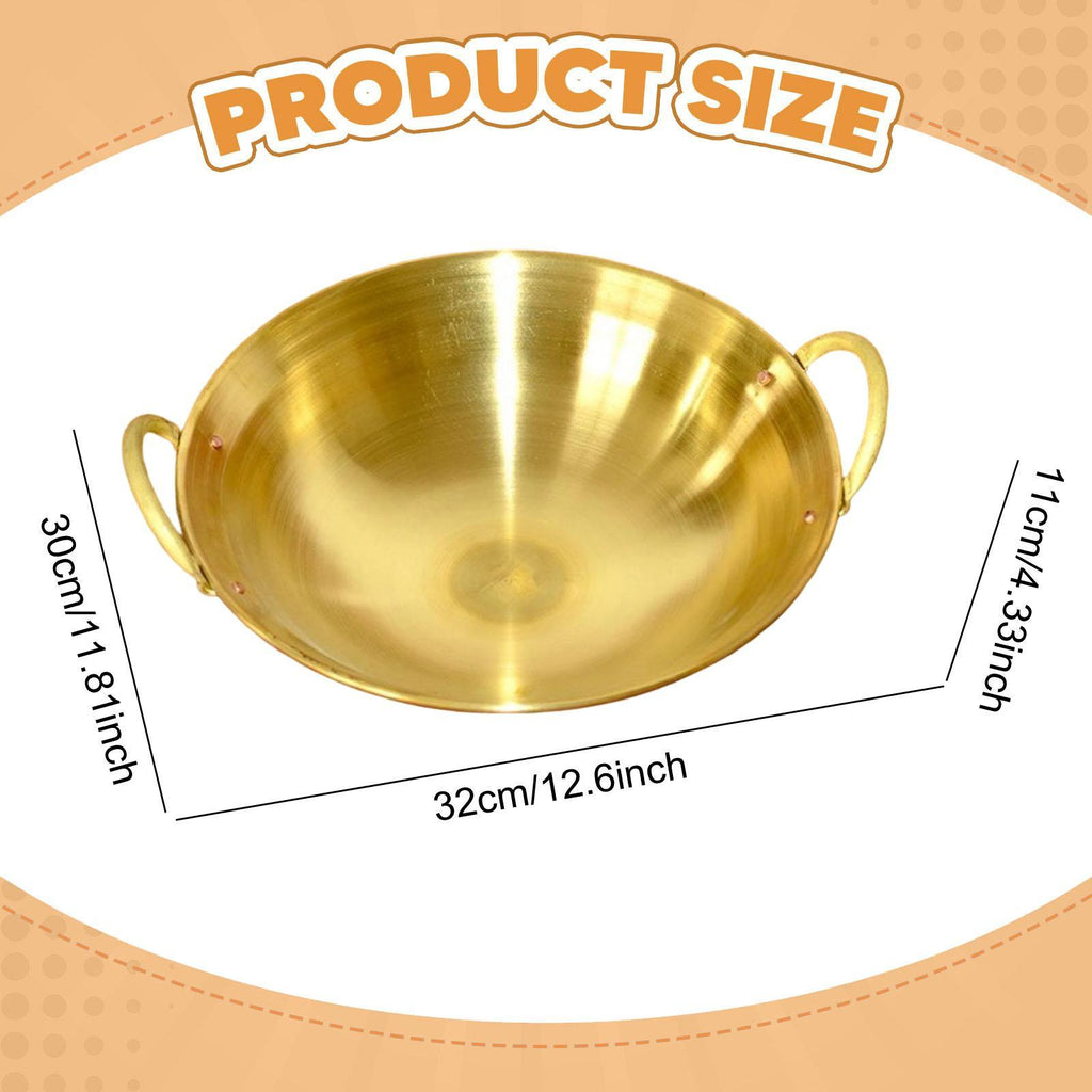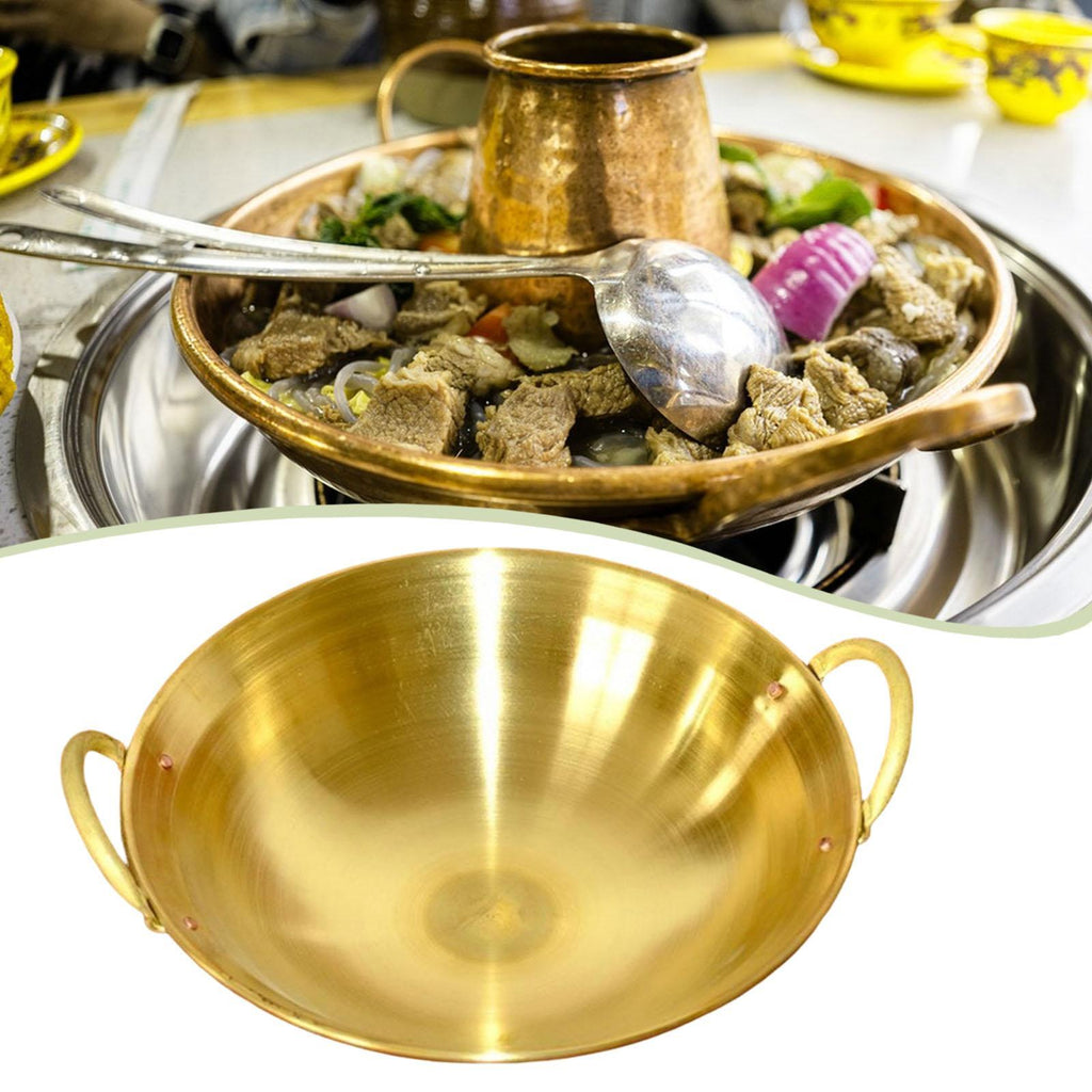 - 【Elegant Appeal】: The round brass cooking pot not only enhances the flavor of your dishes but also adds a touch of sophistication to your kitchen decor, making every meal a special occasion