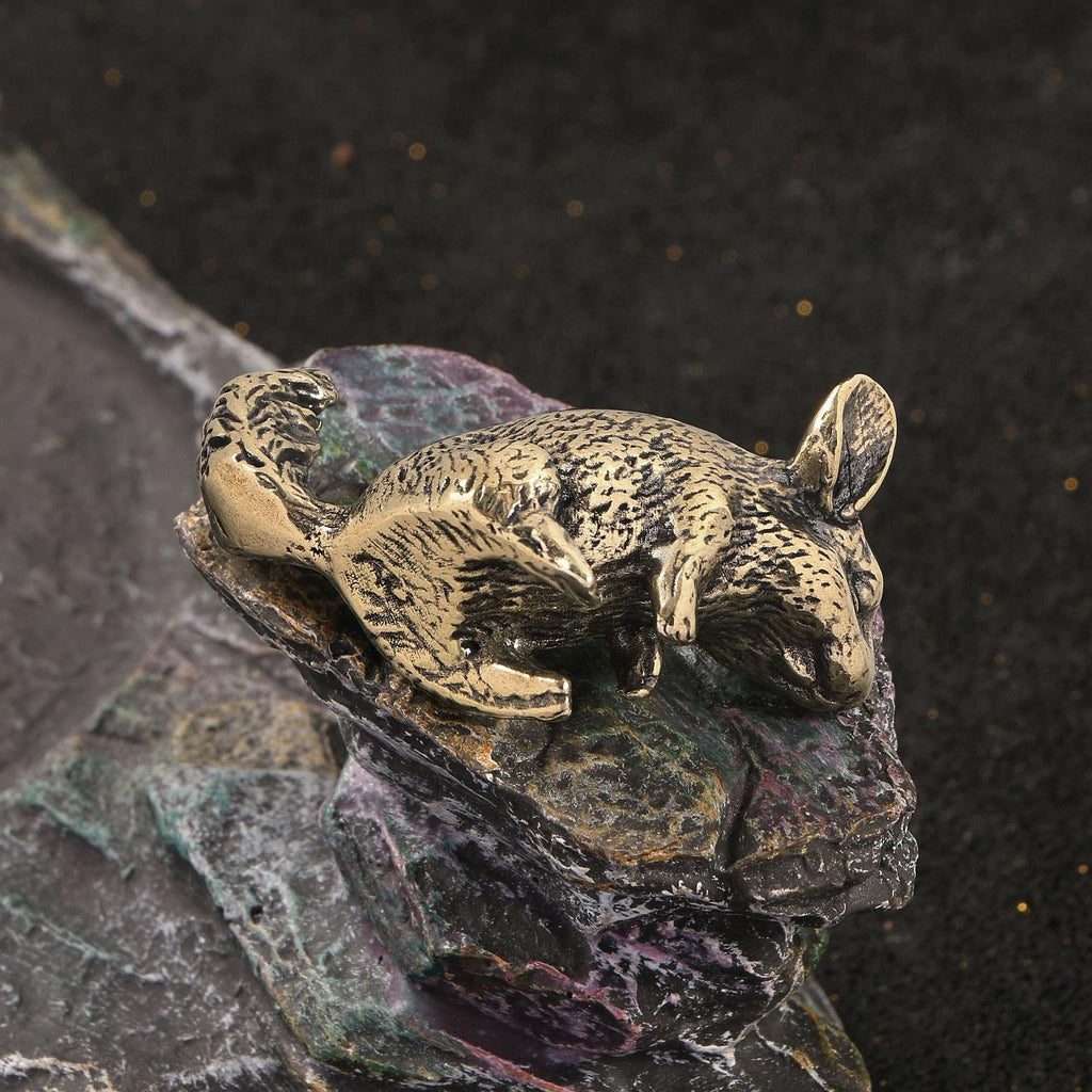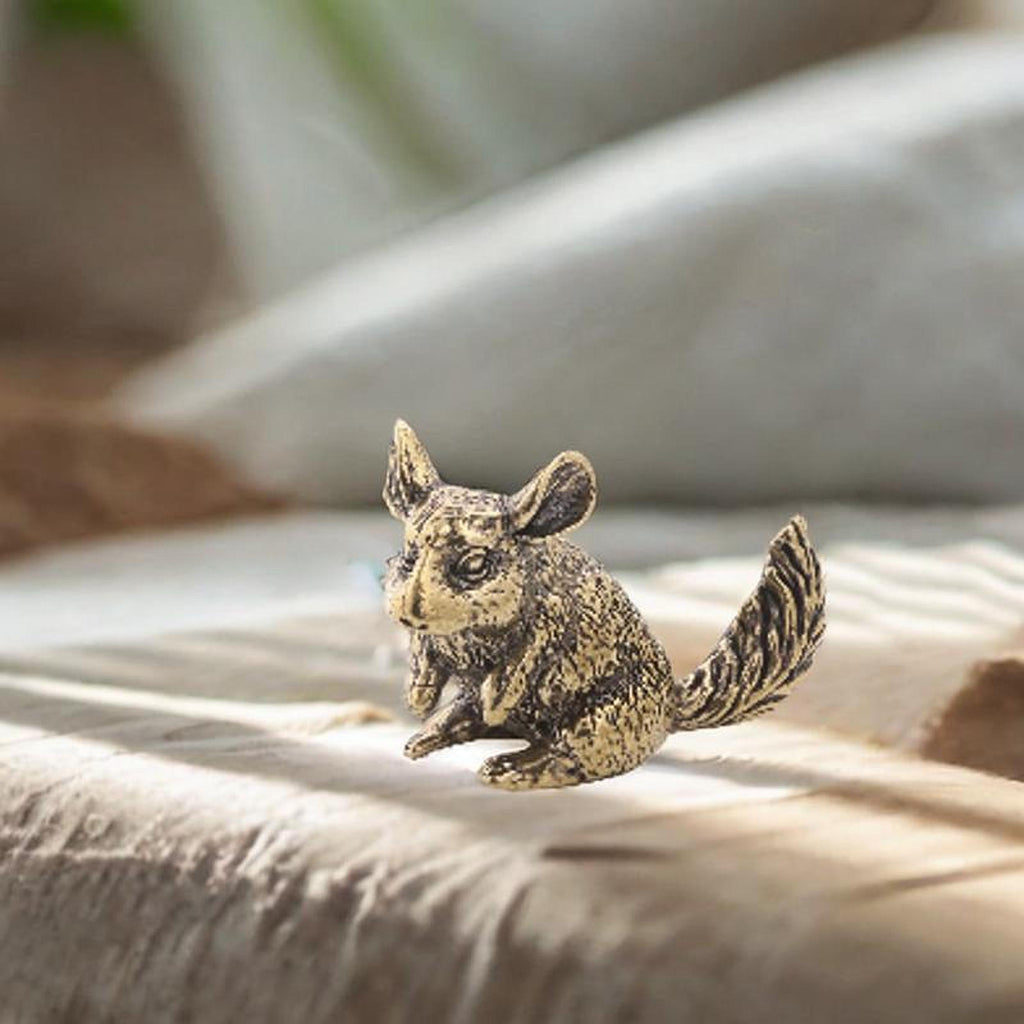 Desk Decoration: Decorative miniature brass squirrel figurine animal satue with detailed carvings, fits on any desk, shelf, without taking up too much space
