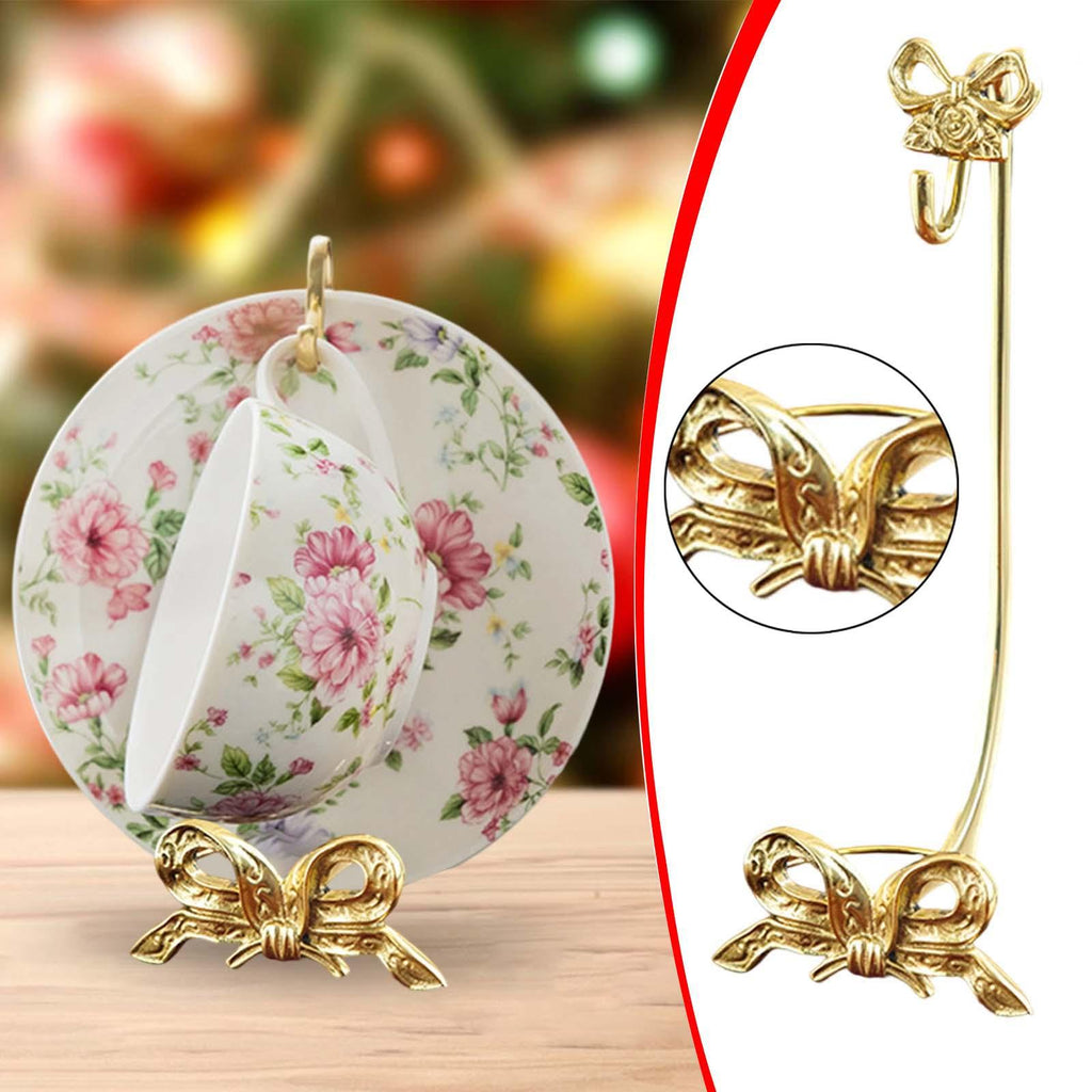 - 【Brass Material】: Made of brass, Brass Teacup and Saucer Display Stand boasts a sturdy construction, resists deformation, and stands securely on your desk
