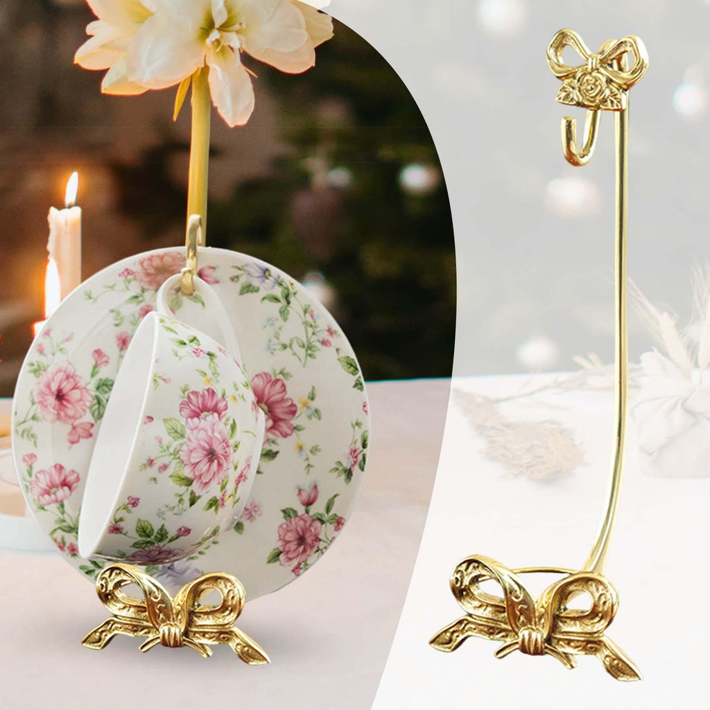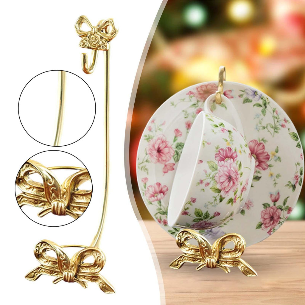 Maxbell Brass Tea Cup and Saucer Display Stand Teacup Easel for Home Desktop Counter L