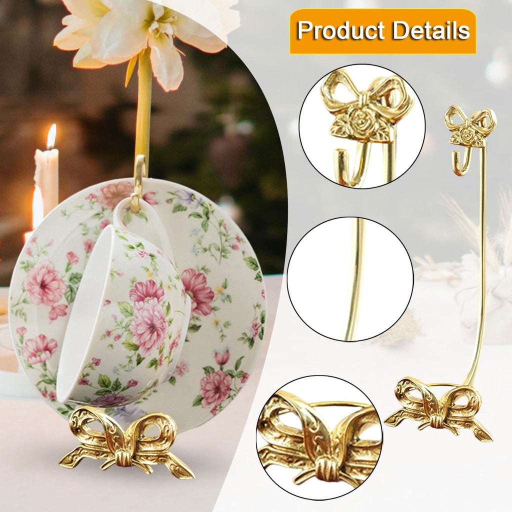 - 【Retro Design】: Tea Holder Rack features a bow design and exquisite carvings, showcasing a rustic, handcrafted aesthetic
