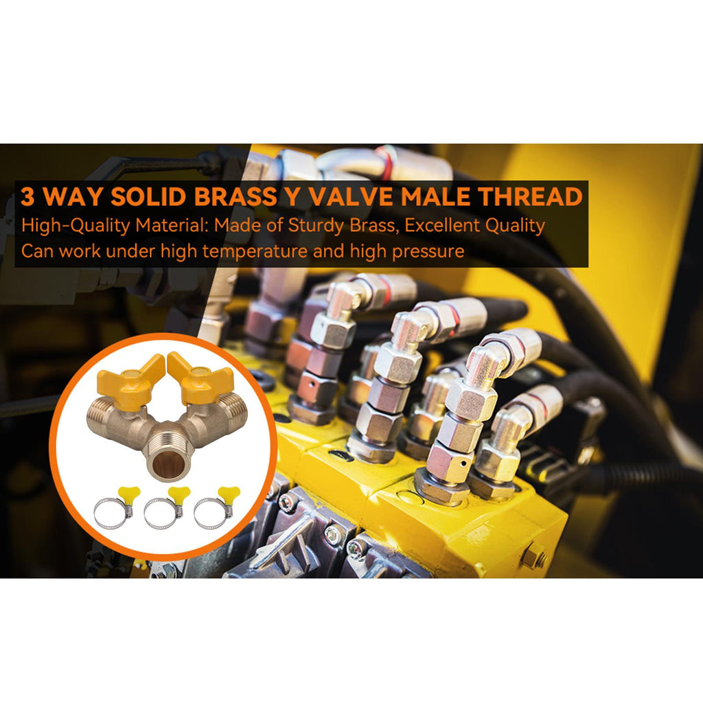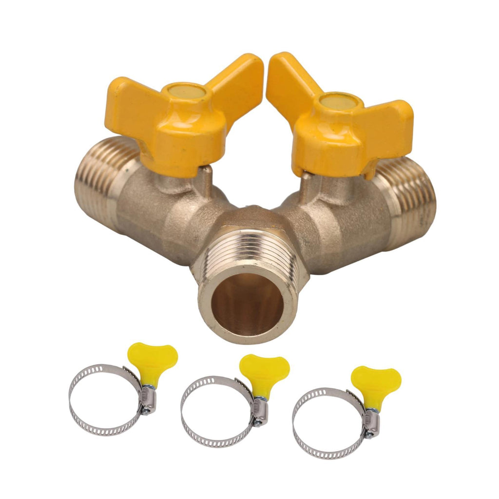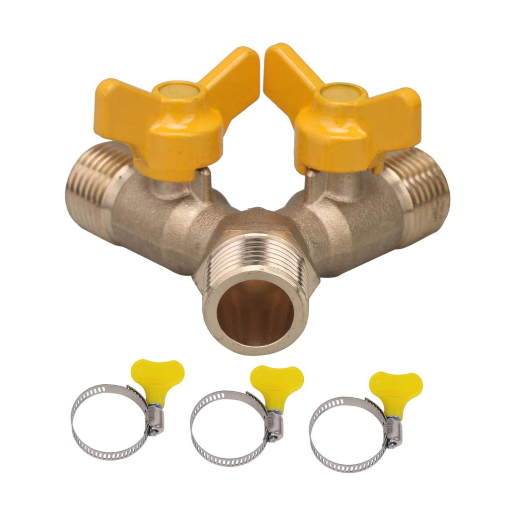 Maxbell Brass Valve with Clamps Home Easy Installation 3 Way Shut Off Valve Y Shaped