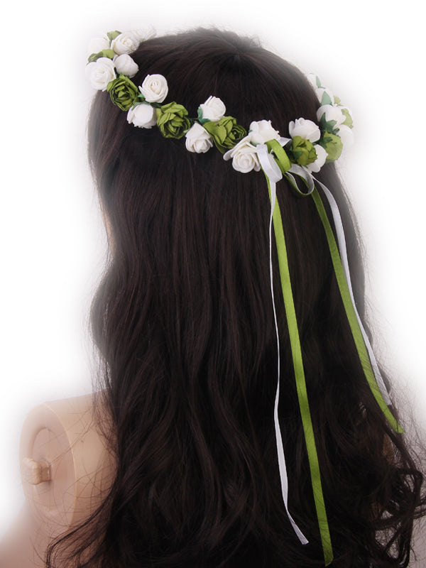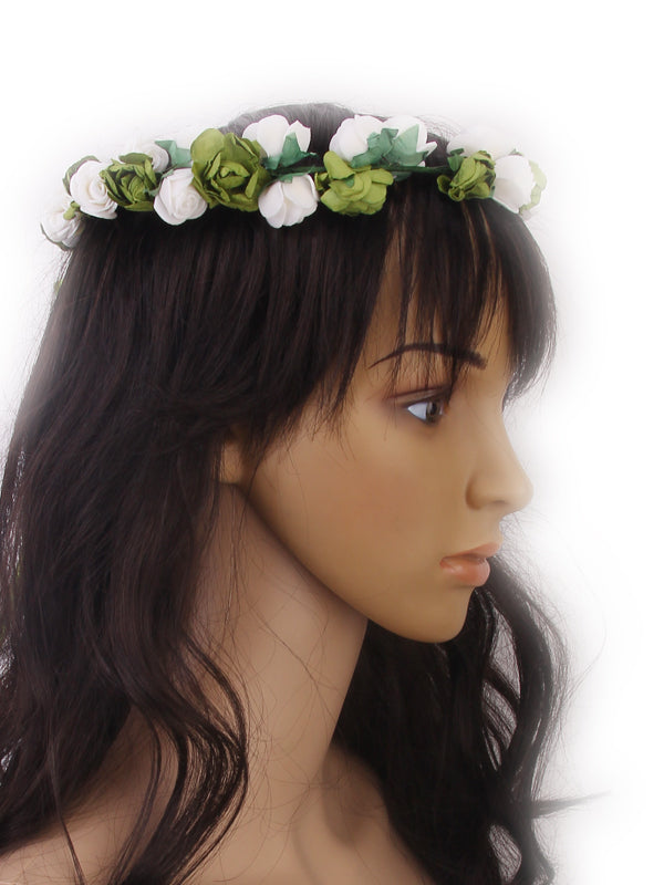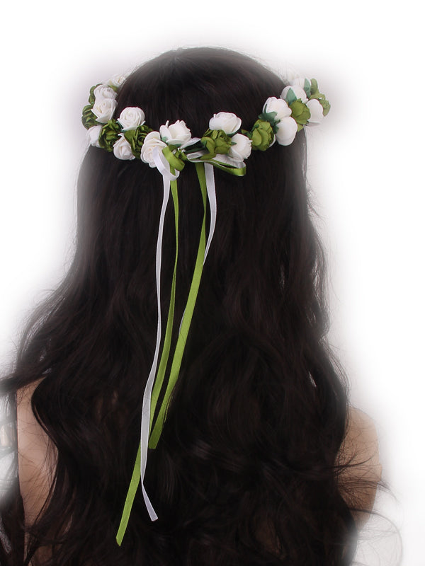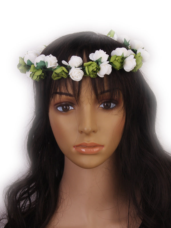 Maxbell Maxbell Bride White and Green Rose Flowers Branch Wedding Head Wreath Crown Floral Halo Headpiece Photography Tool Adult Size