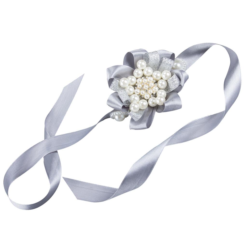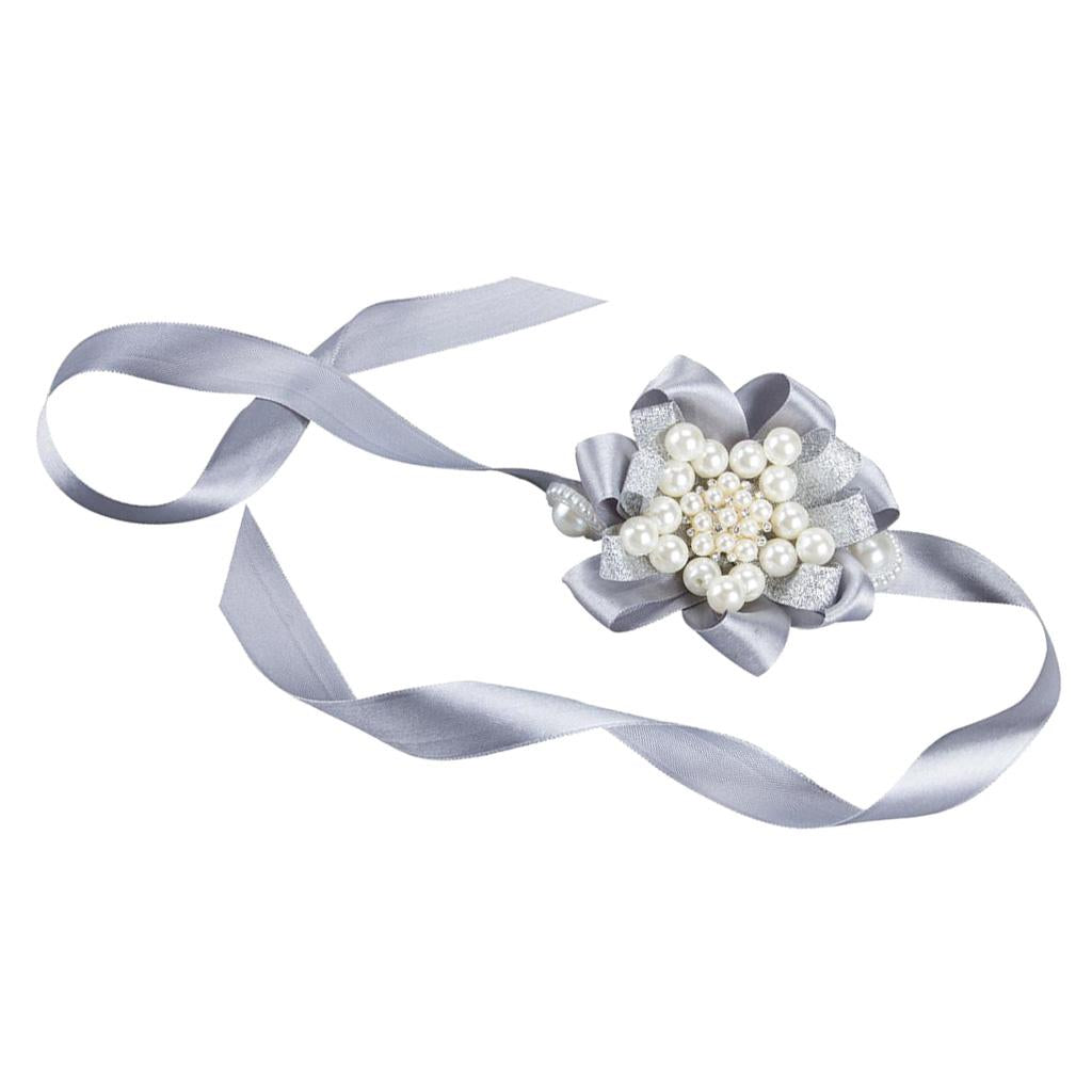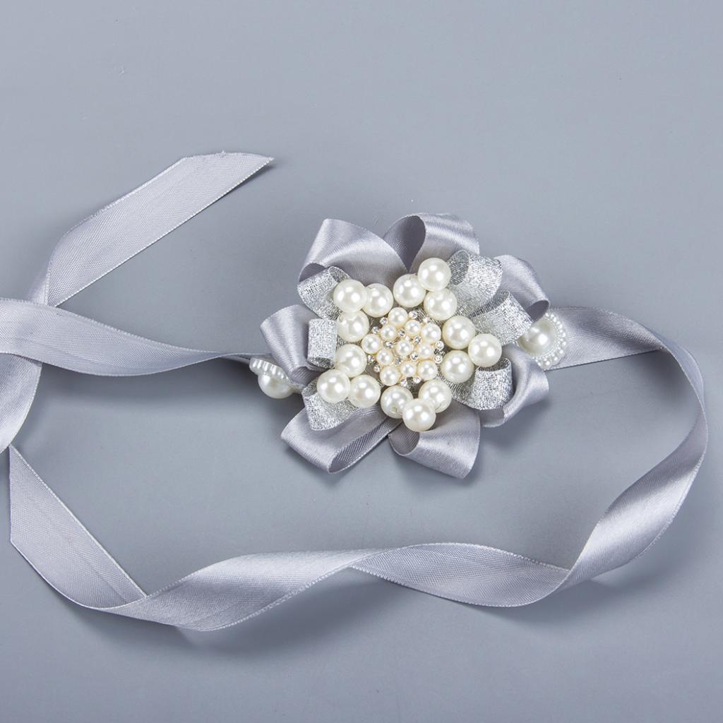 Romantic artificial pearl flower wrist flower with ribbon wrist band, beautiful and elegance.