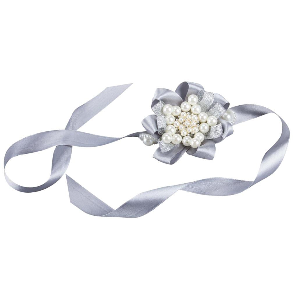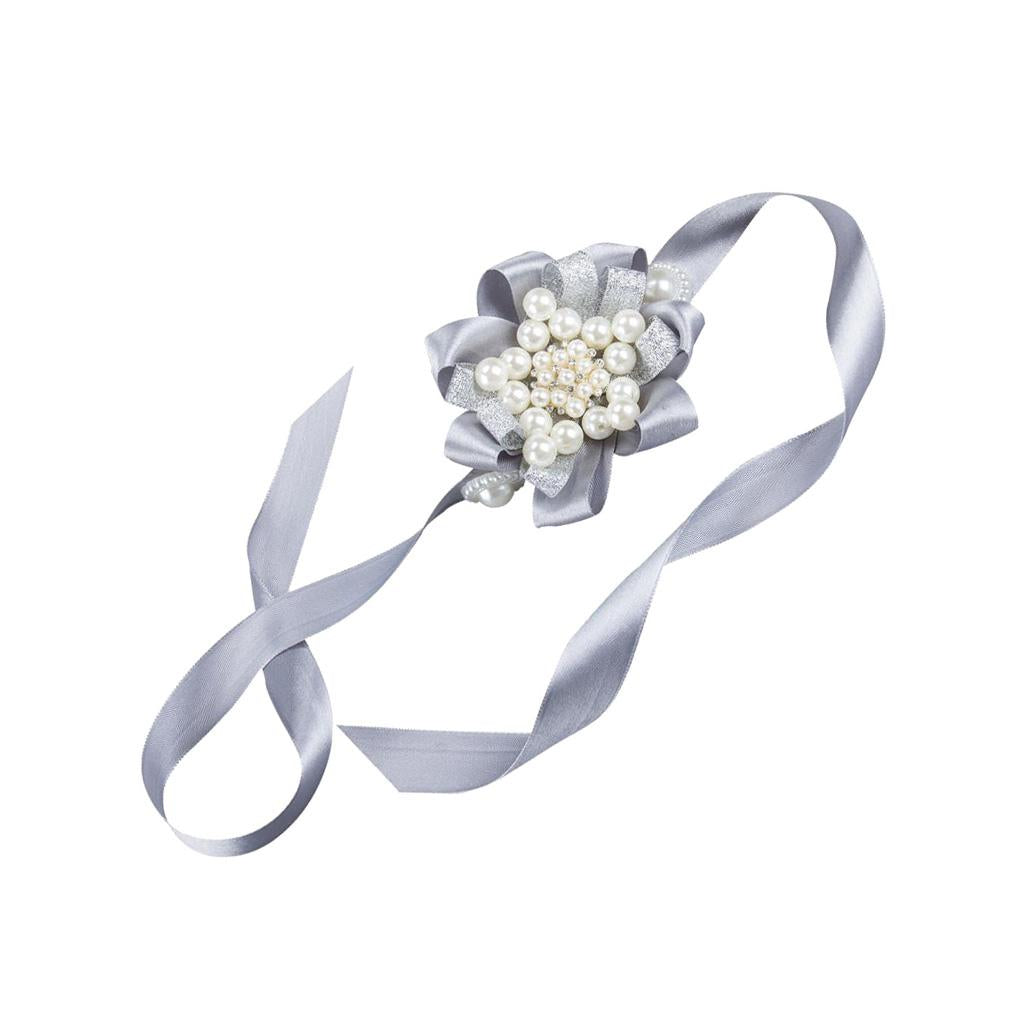 Max Bride Wrist Flowers Corsage Bracelet Hand Flower Wedding Costume Silver Gray