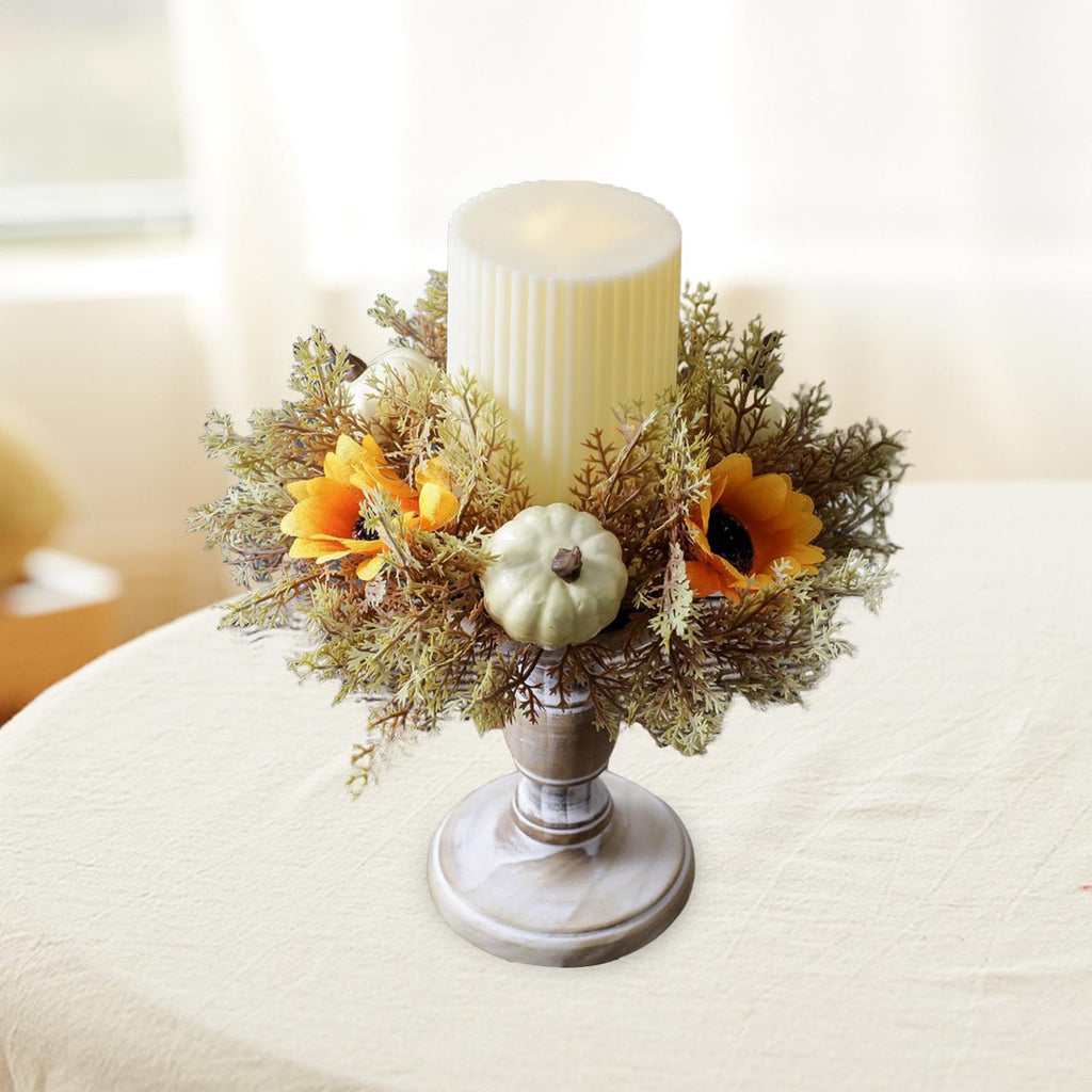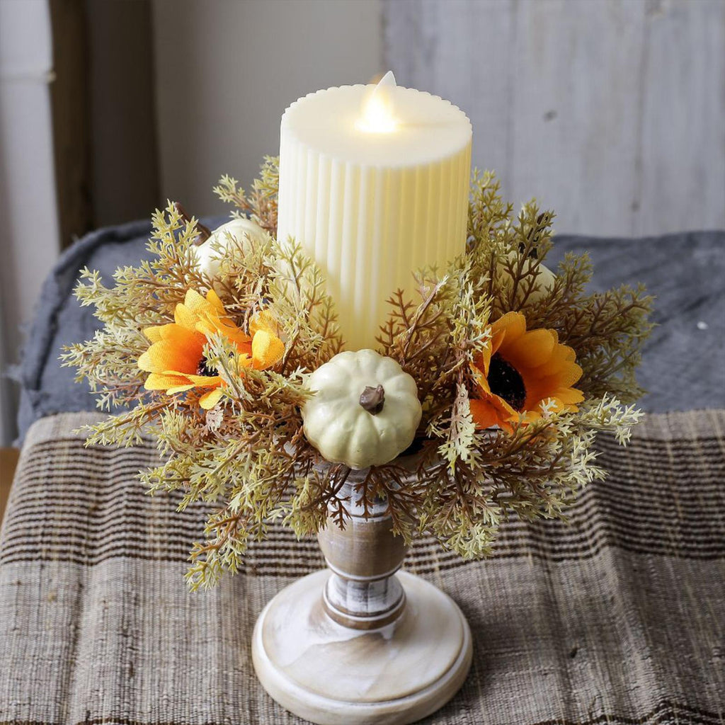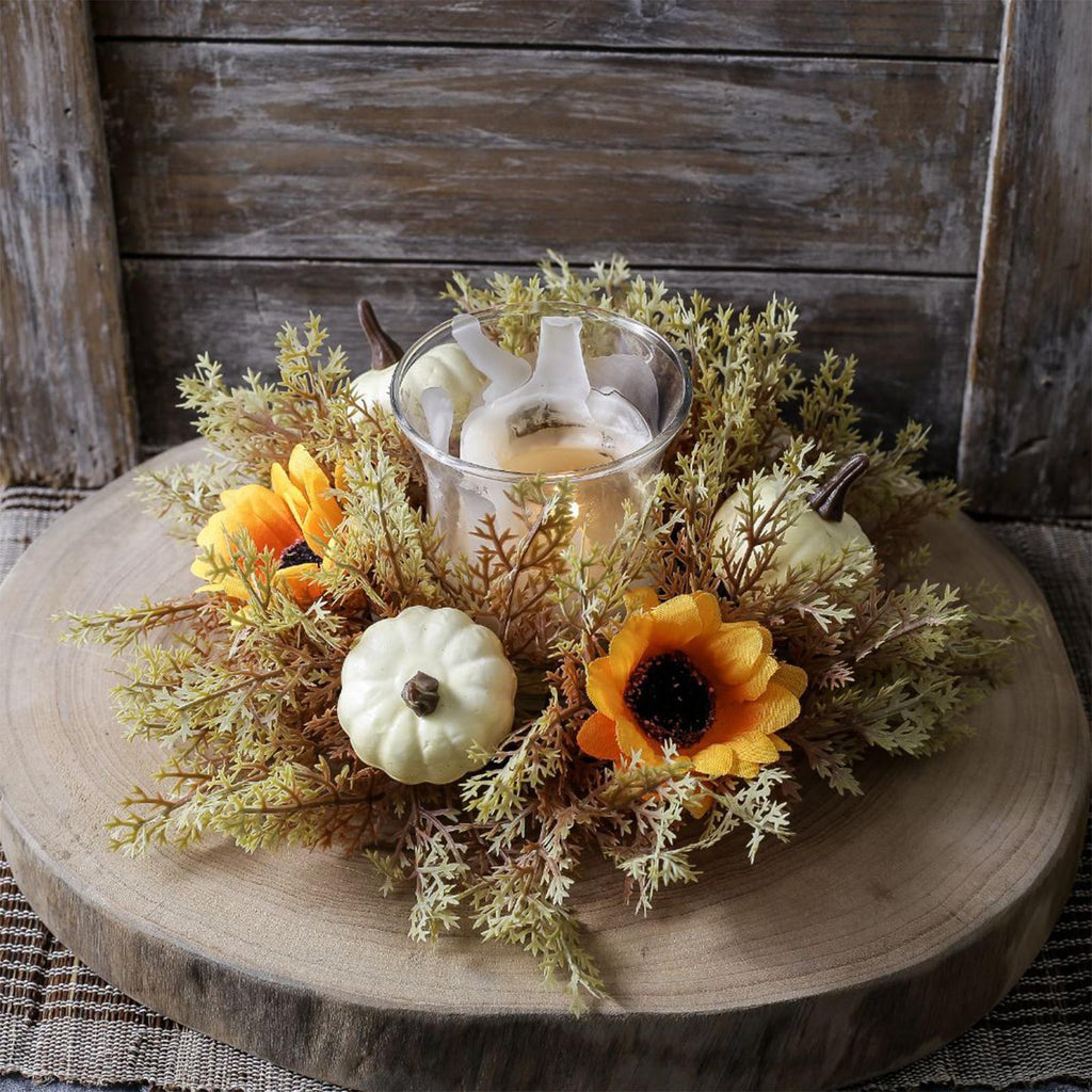Maxbell Candle 9.8" Decoration Candle Wreath for Party Thanksgiving Celebration White Pumpkins