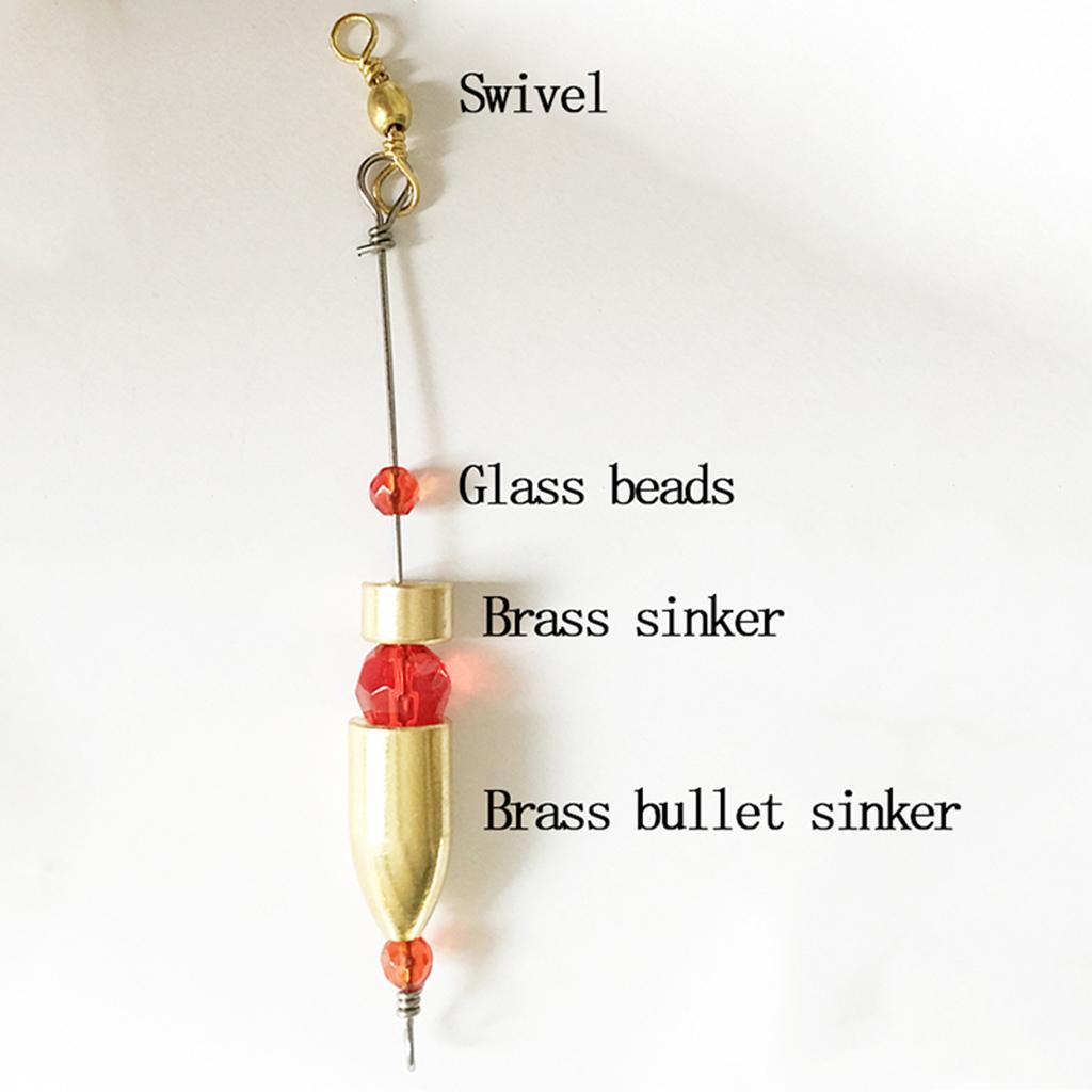 Each rig includes a brass sinker, 3 red glass beads, a brass amplifier and a brass barrel swivel.