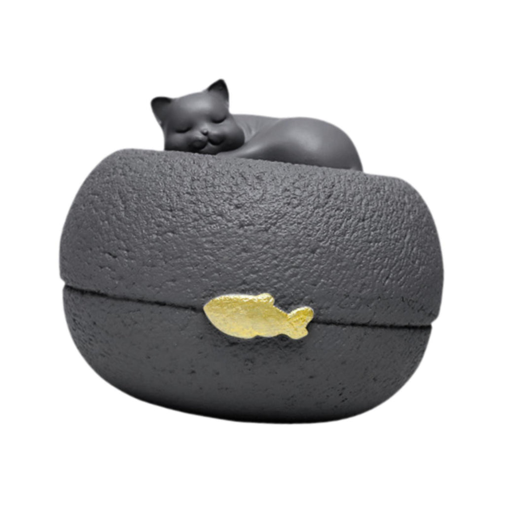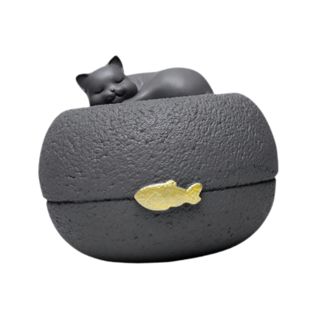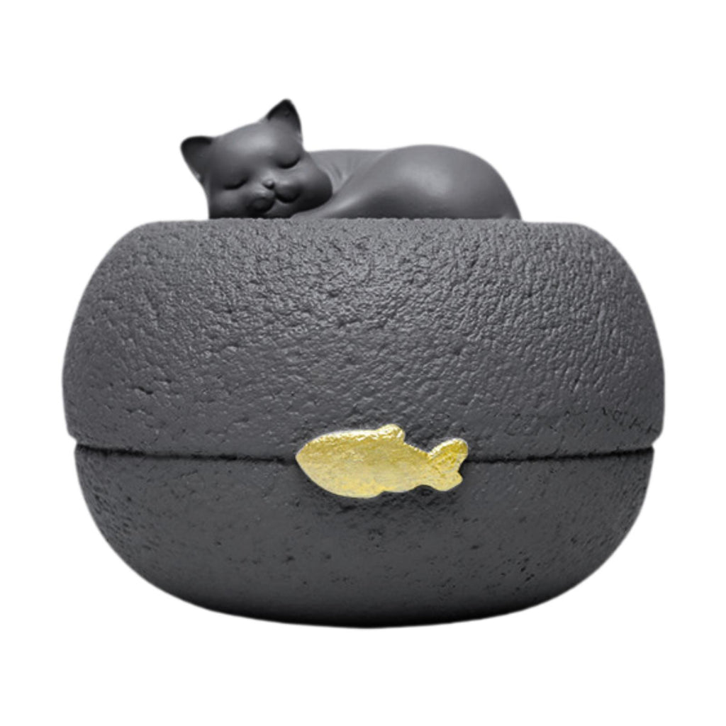 【Cute Cat Design】: There is a sleeping cat on the urn, decorated with golden fish. The overall shape is round and cute, which evokes warm memories for the pet owner