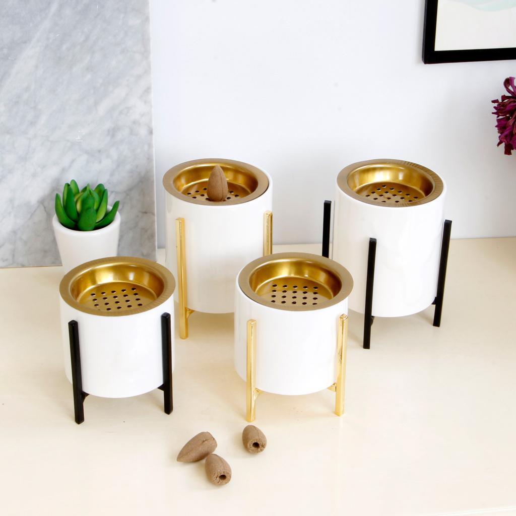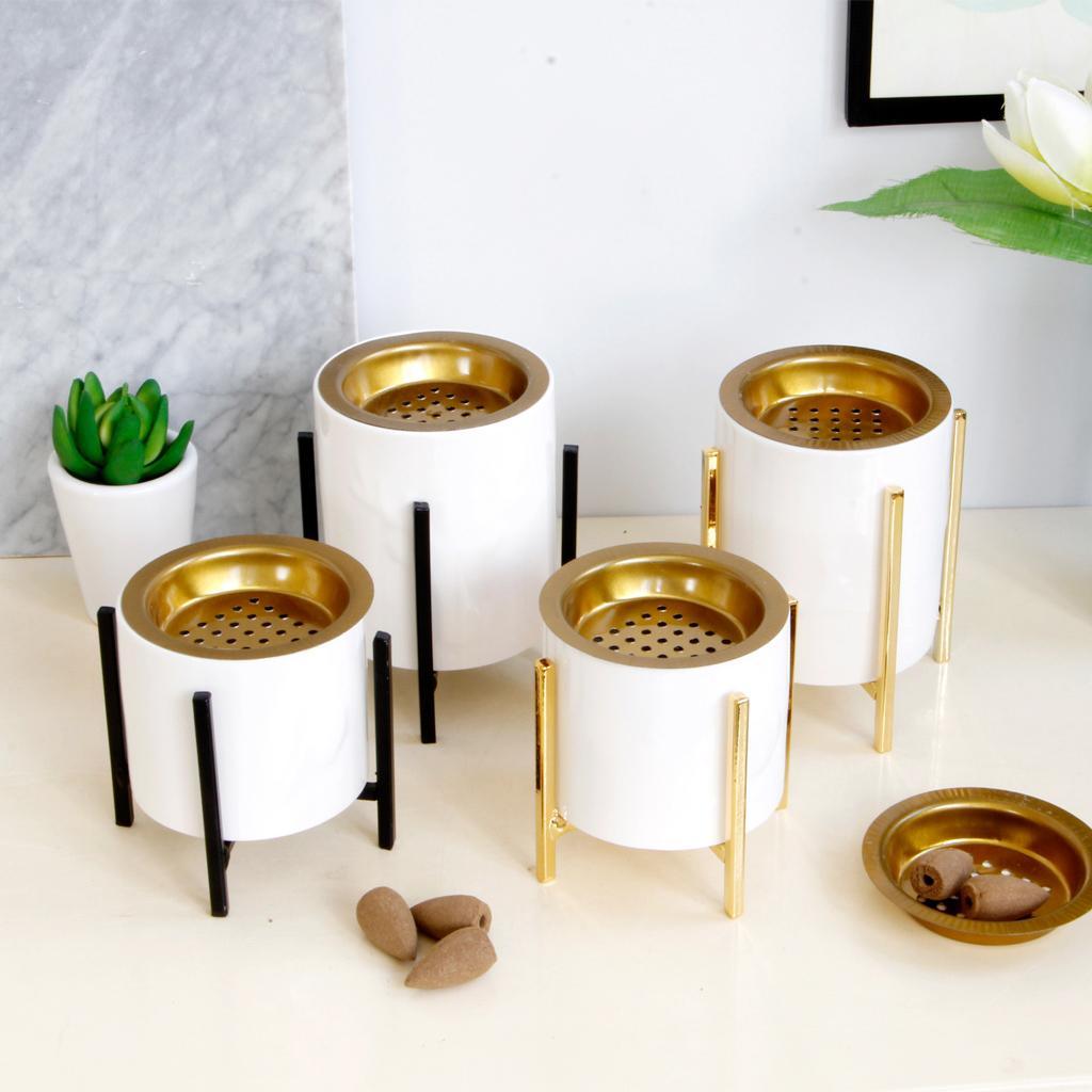 Maxbell Ceramic Incense Burner Censer with Bracket Gasket Home Deco Black Bracket-L