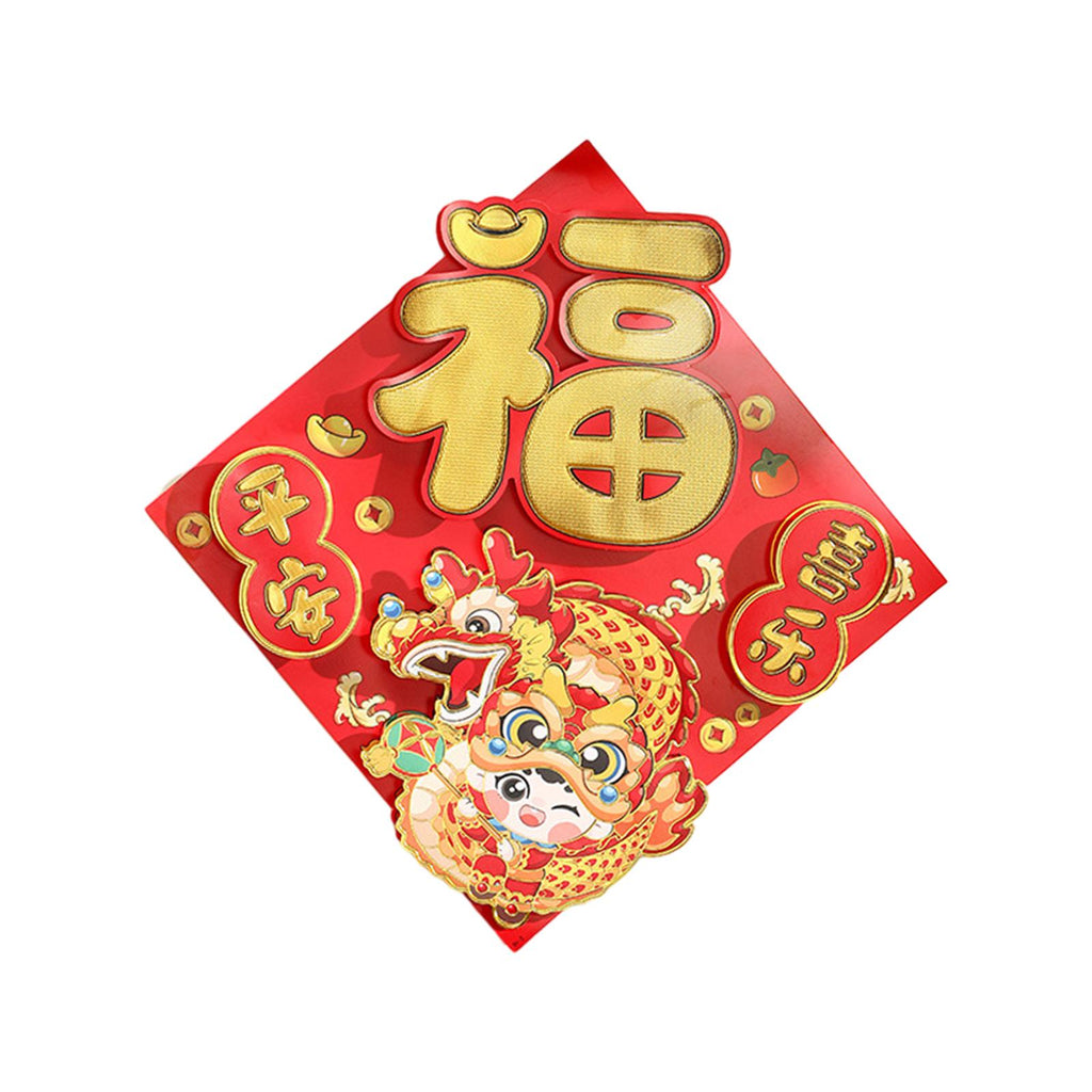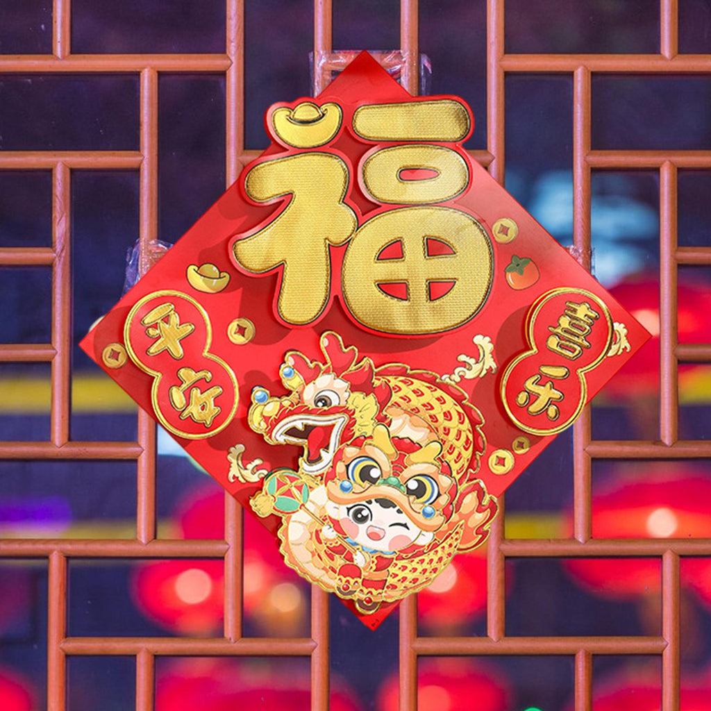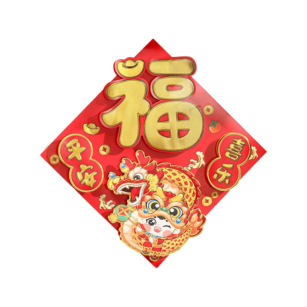 【Fine Craftsmanship】: The 2024 Chinese New Year door sticker is designed with Chinese characters, and Chinese dragon decorative, adding a traditional and cultural element to your Lunar New Year decorations.