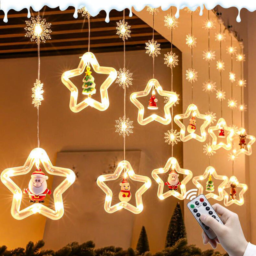 Christmas Hanging Lights String: led String include 10 Christmas images, santa, Christmas tree, Snowman, Elk, Christmas hat. Under warm light, the colorful and vivid appearance adds a feeling of Christmas atmosphere.