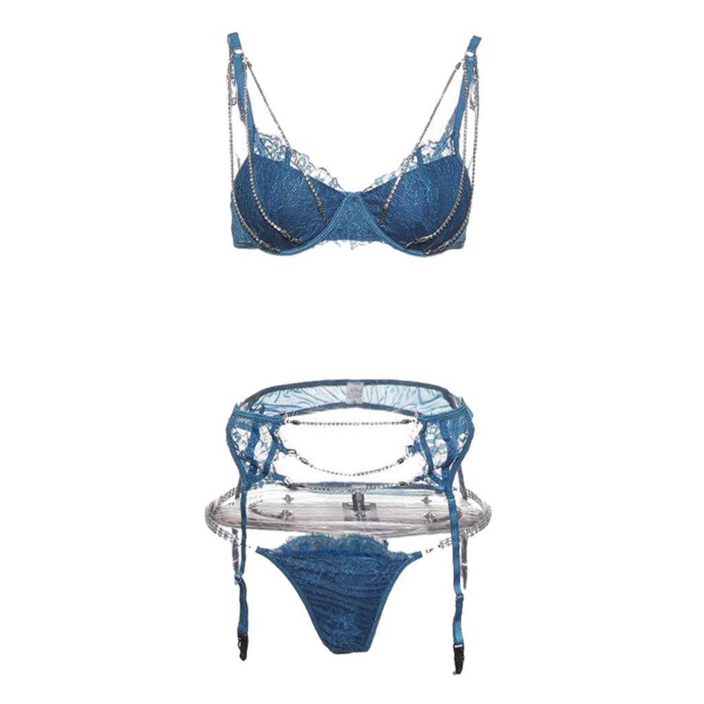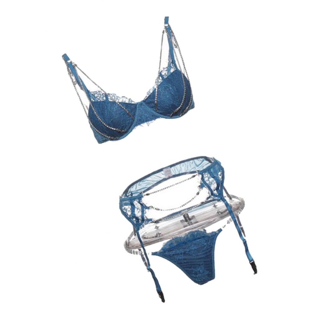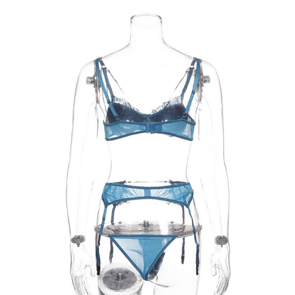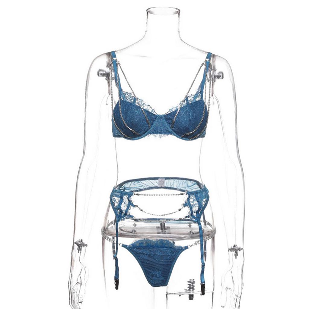 Maxbell Maxbell Crystal Chain Sexy Lingerie Women 3 Piece Lace Bodysuit Bra and Panty Set M