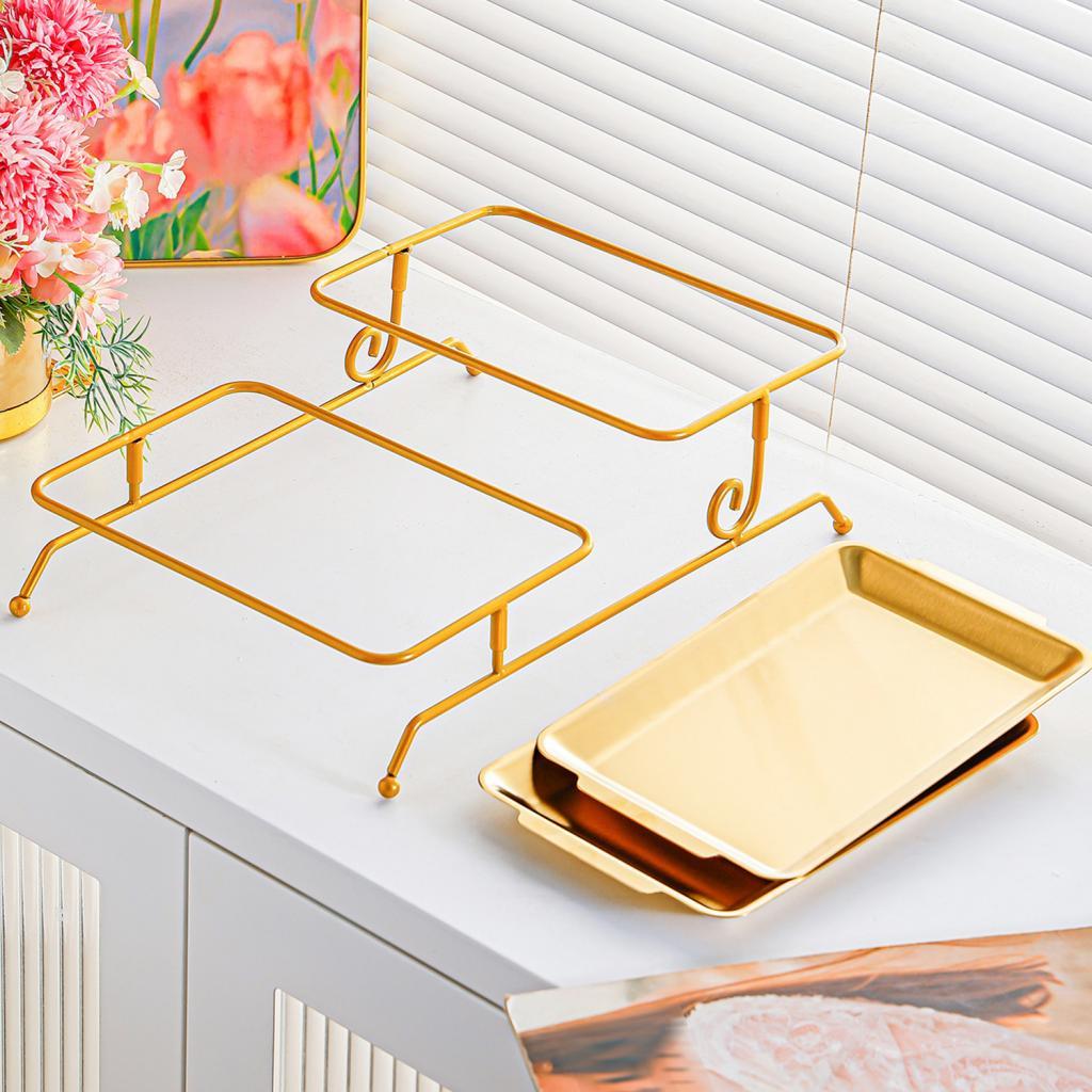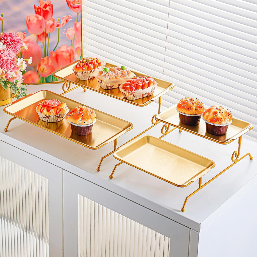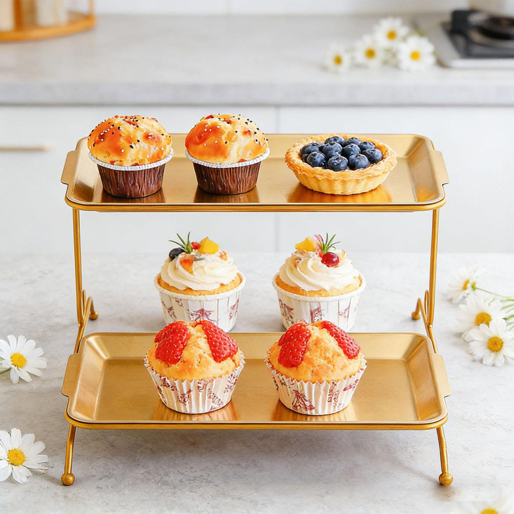 - 【Deocration】The sleek gold frame make this tiered tray ideal for both professional catering and casual home parties. Whether hosting themed events or daily gatherings in bakeries and cafes, it’s sure to entice guests to sample your delicious offerings