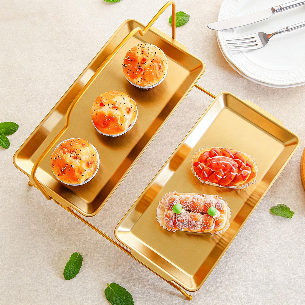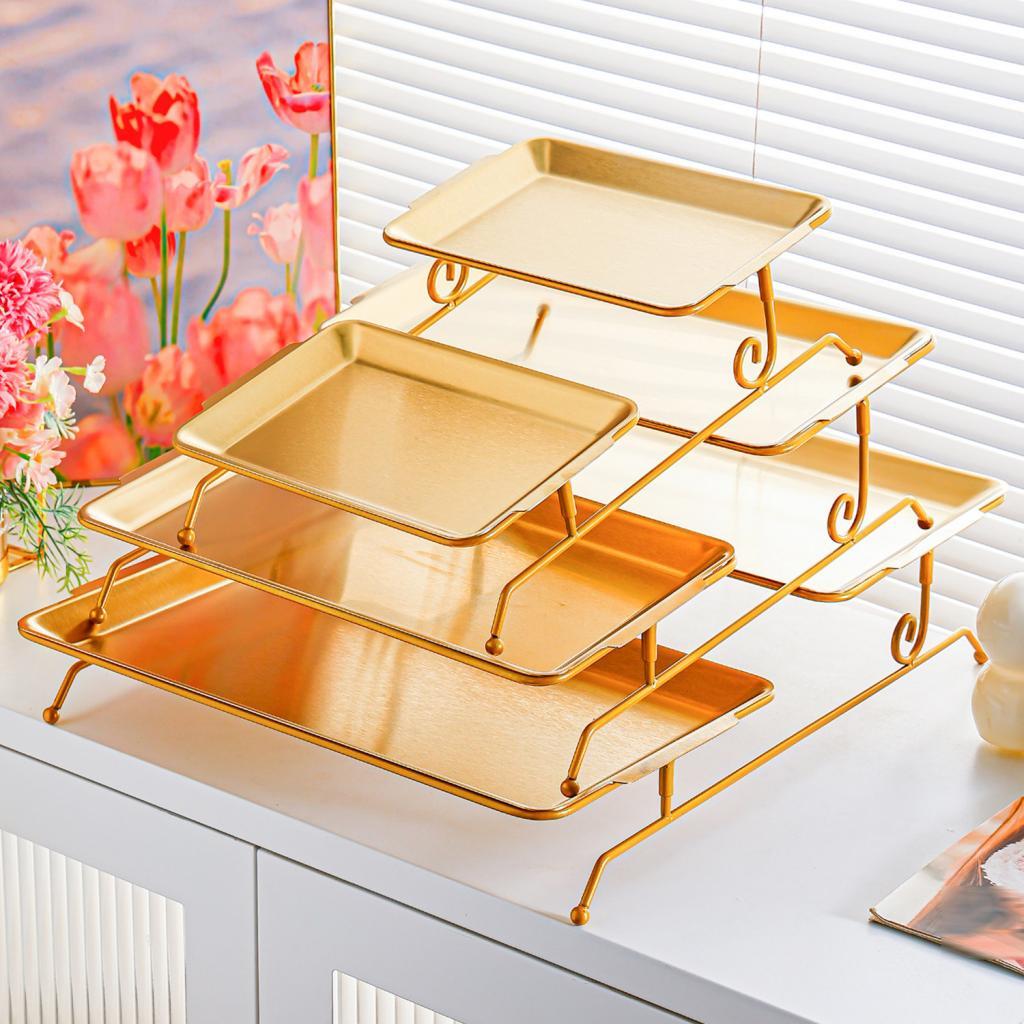- 【Deocration】The sleek gold frame make this tiered tray ideal for both professional catering and casual home parties. Whether hosting themed events or daily gatherings in bakeries and cafes, it’s sure to entice guests to sample your delicious offerings