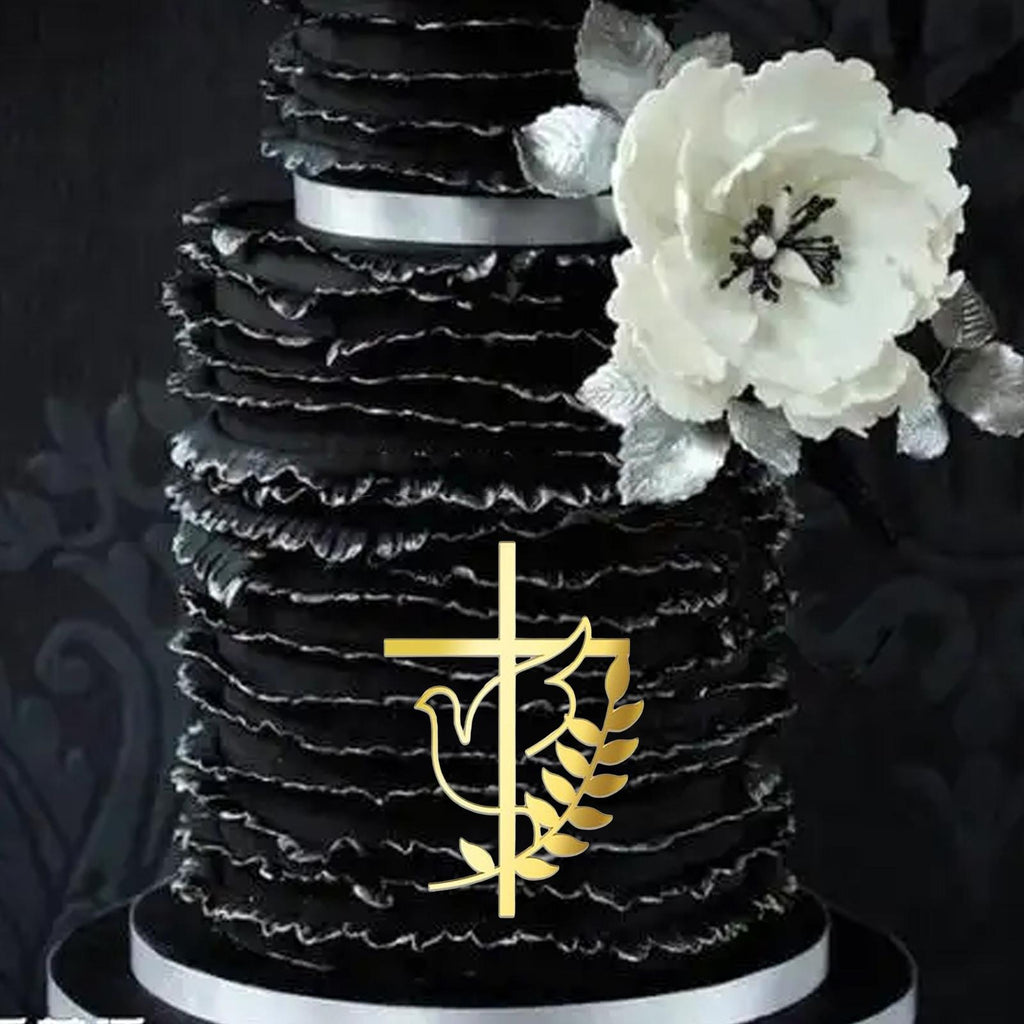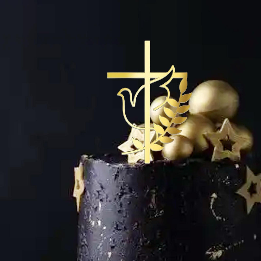 【Unique Design】: Cross cake topper uses symbolic dove and cross patterns to add a meaningful touch to your cake, symbolizing peace and spirituality