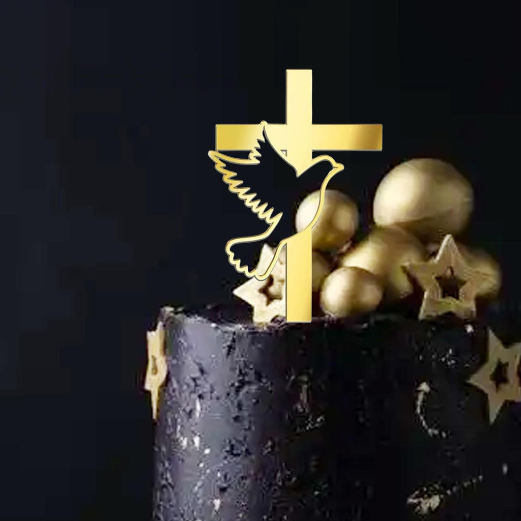 【Unique Design】: Cross cake topper uses symbolic dove and cross patterns to add a meaningful touch to your cake, symbolizing peace and spirituality