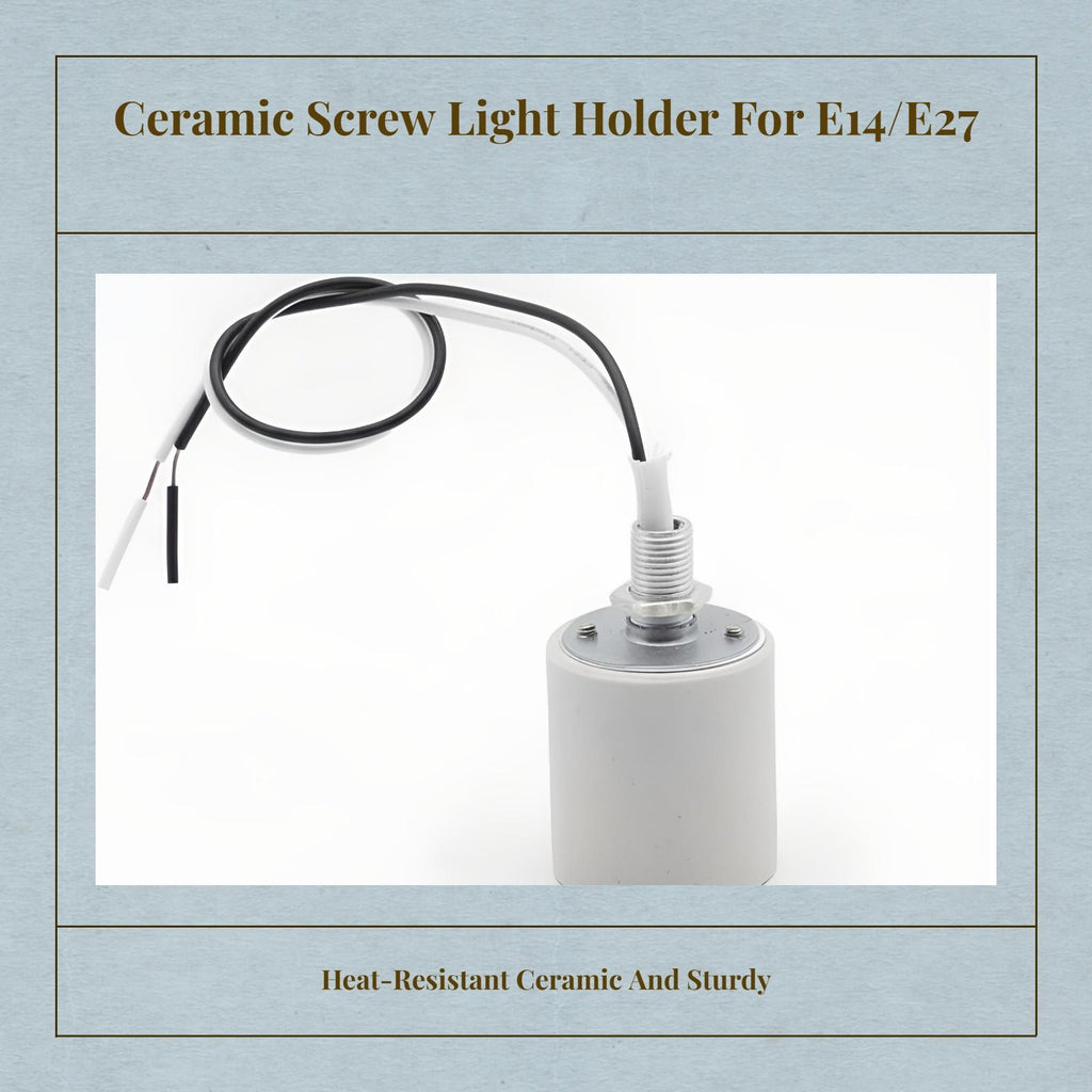【Adaptable Ceramic Light Fixture Holder for DIY Lighting】This E14/E27 ceramic light fixture holder with wire is designed for high temperature tolerance, making it perfect for table lamps, ceiling lights, and wall lamps in bedrooms, kitchens, and living rooms.【High Temperature Resistant and sturdy】Made from quality ceramic and metal, this fixture holder offers dependable performance even with extended use, suitable for a variety of lighting fixtures and household lighting needs.【Easy Installation and Broad Compatibility】No welding required—just connect and install. Compatible with most E14 and E27 screw-type bulbs, making it an choice for DIY lighting projects and fixture upgrades.【Practical Accessory for Multiple Applications】Perfect for home lighting, fixture repairs, and upgrades. Suitable for chandeliers, table lamps, and wall lamps, providing versatile alternatives for different spaces.【dependable Lighting Solution】The ceramic material ensures insulation and heat tolerance, offering long and durability for your lighting fixtures.