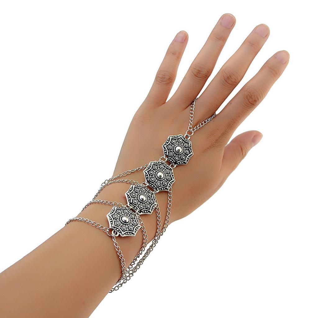 Maxbell Elegant Crystal Finger Ring Bracelet Attached Link Hand Harness Bangle