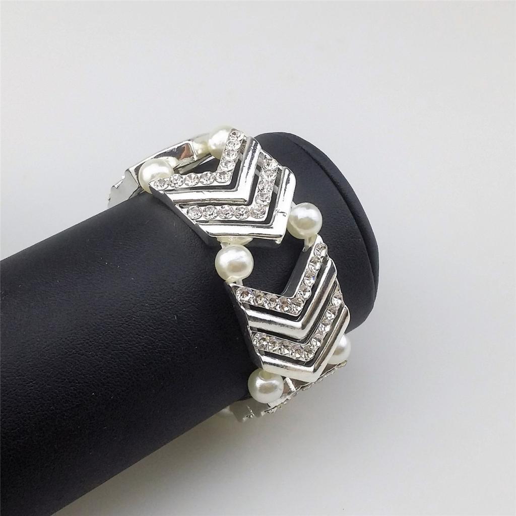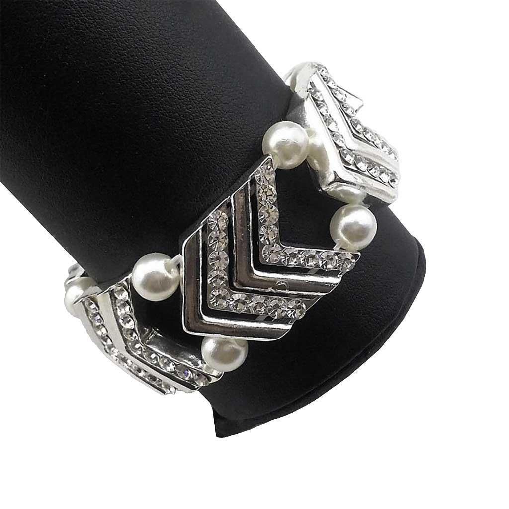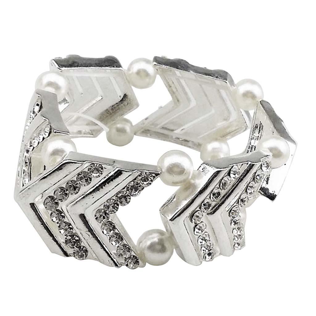 Maxbell Elegant Wedding Bridal Stretch Clear Rhinestone Bracelet Bangle Silvery