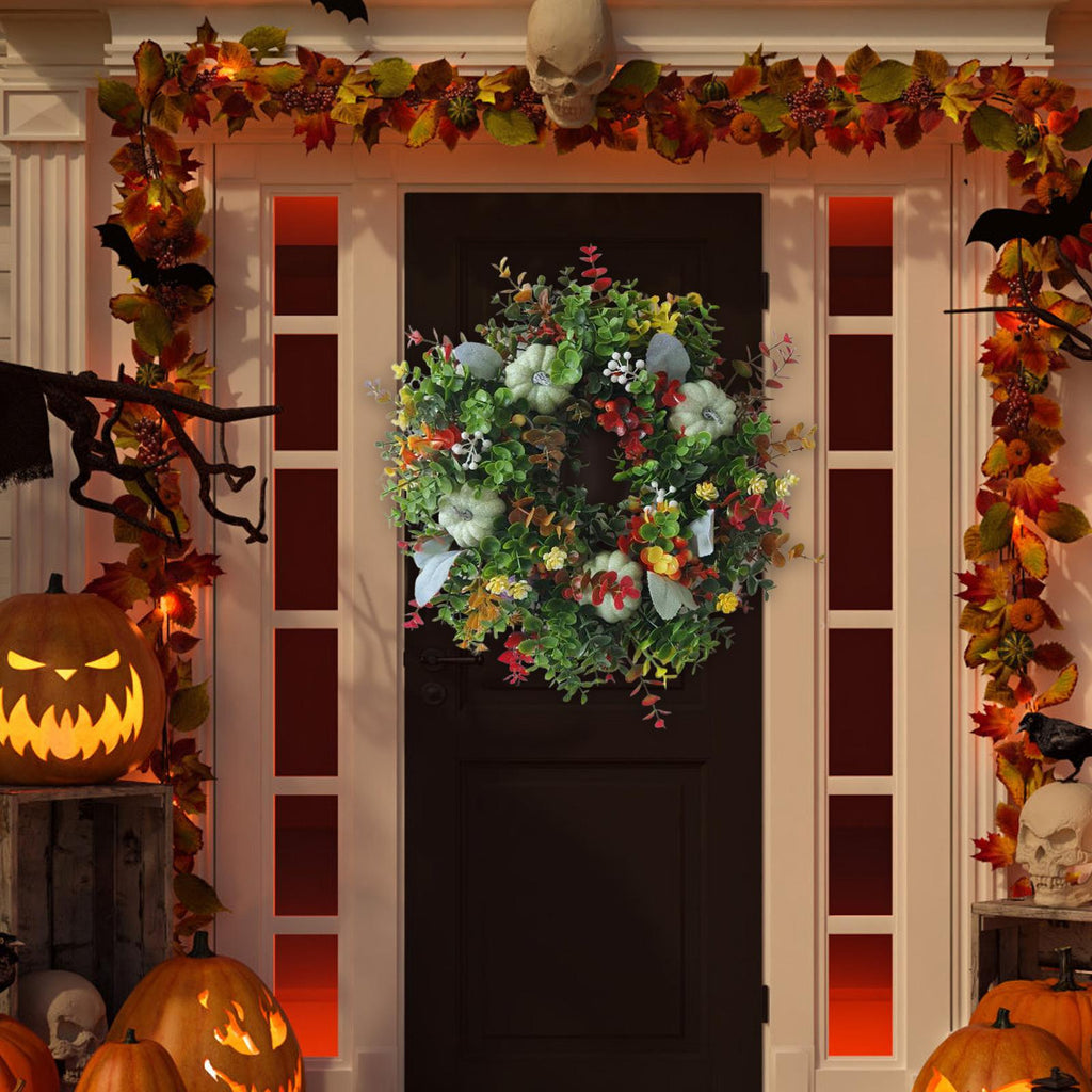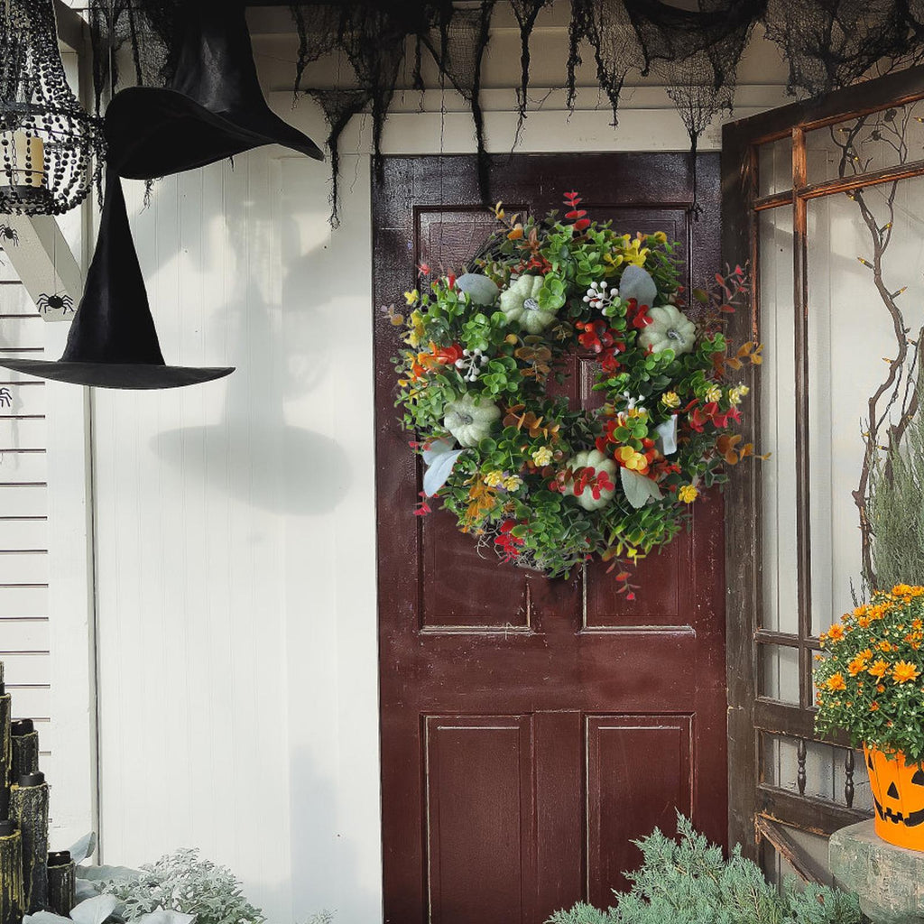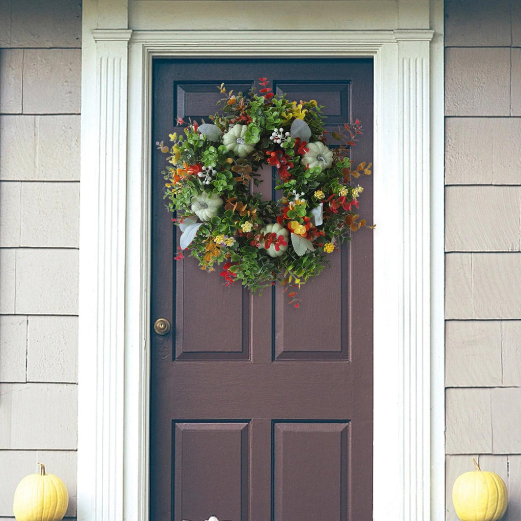 - 【Pumpkin Wreath】The artificial wreath is decorated with eucalyptus and pumpkin, vivid and lifelike, great for both indoor and outdoor decorations.