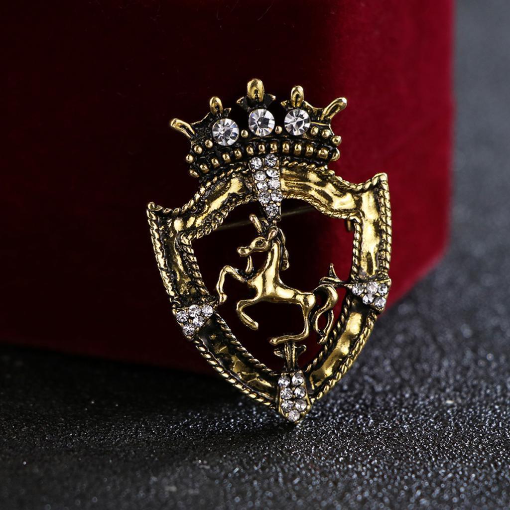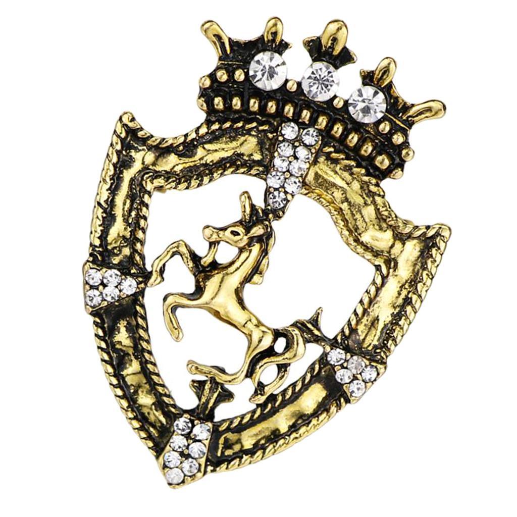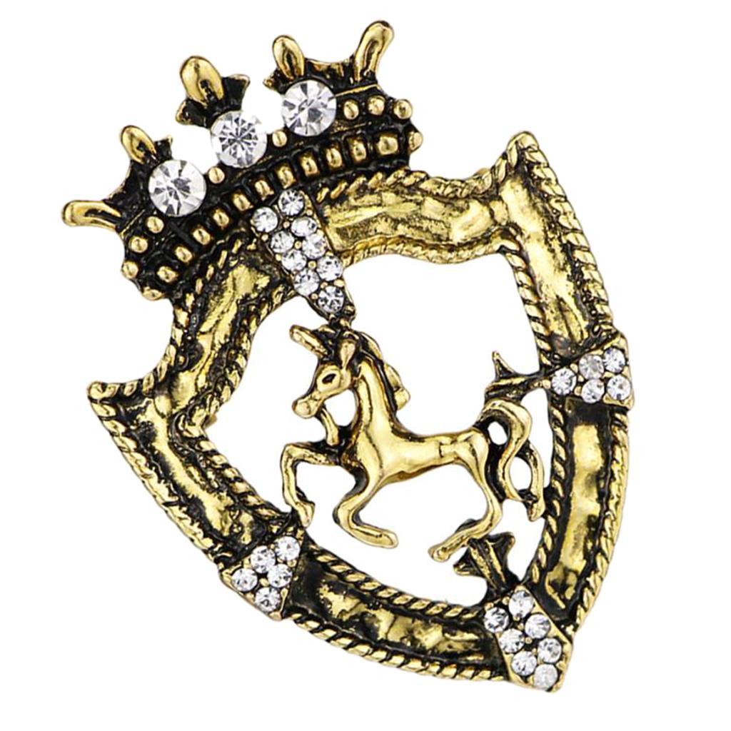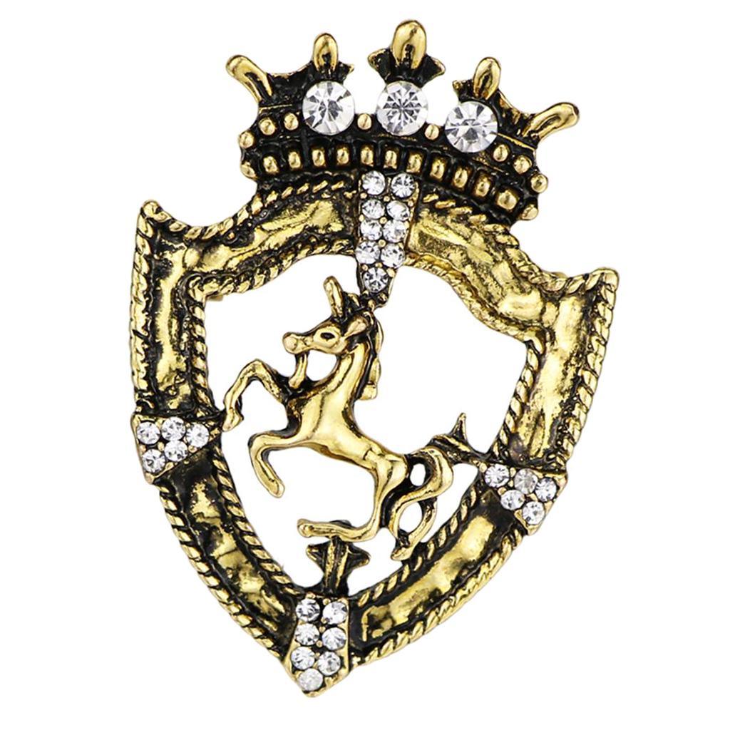 Maxbell Maxbell Fancy Queen Crown Brooch Crystal Unicorn Racing Badge Brooch Antique Brass