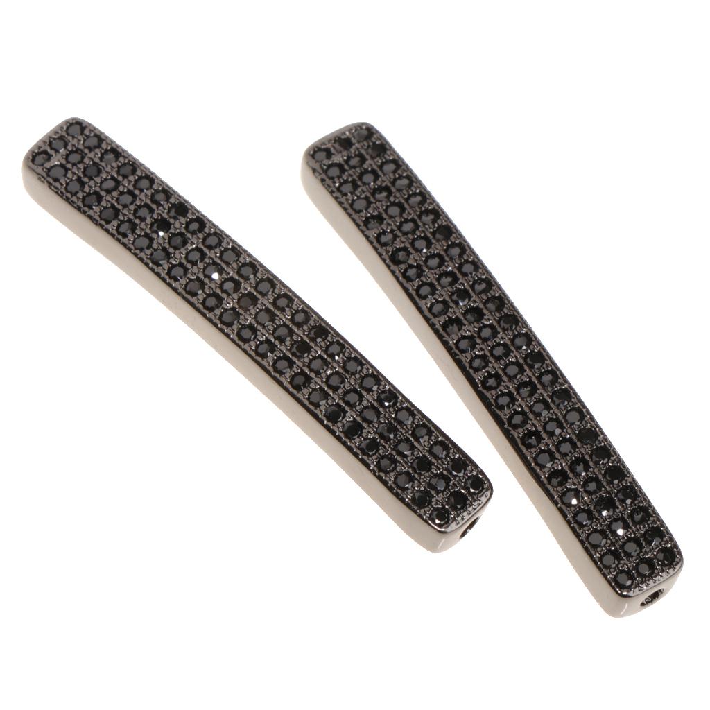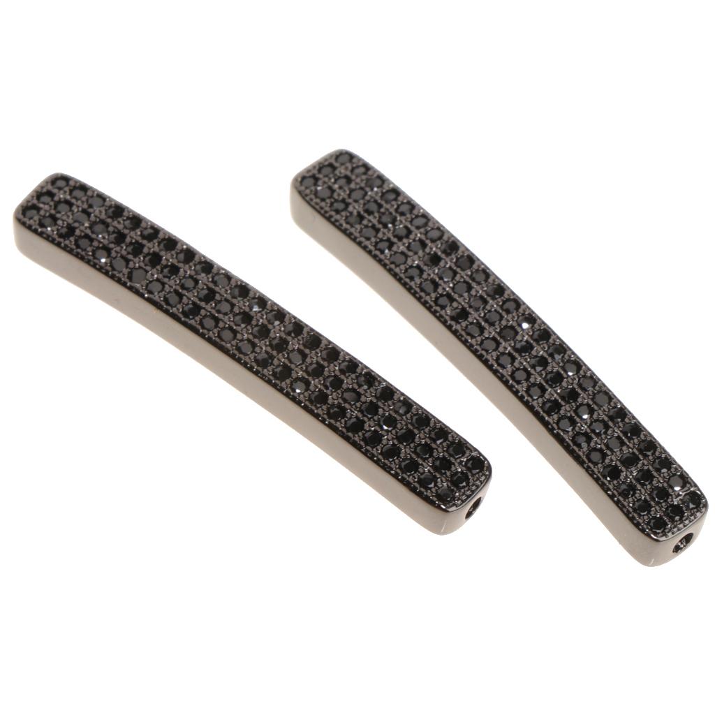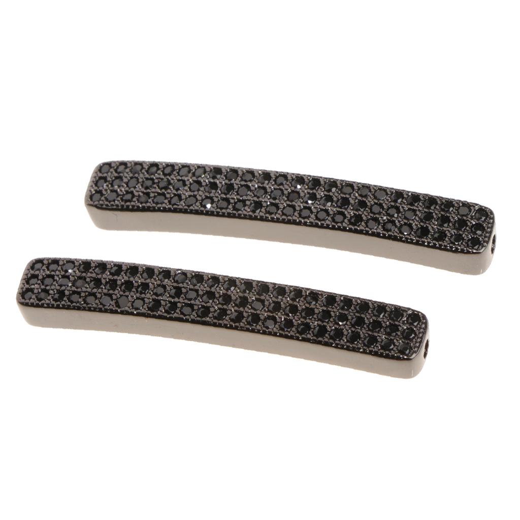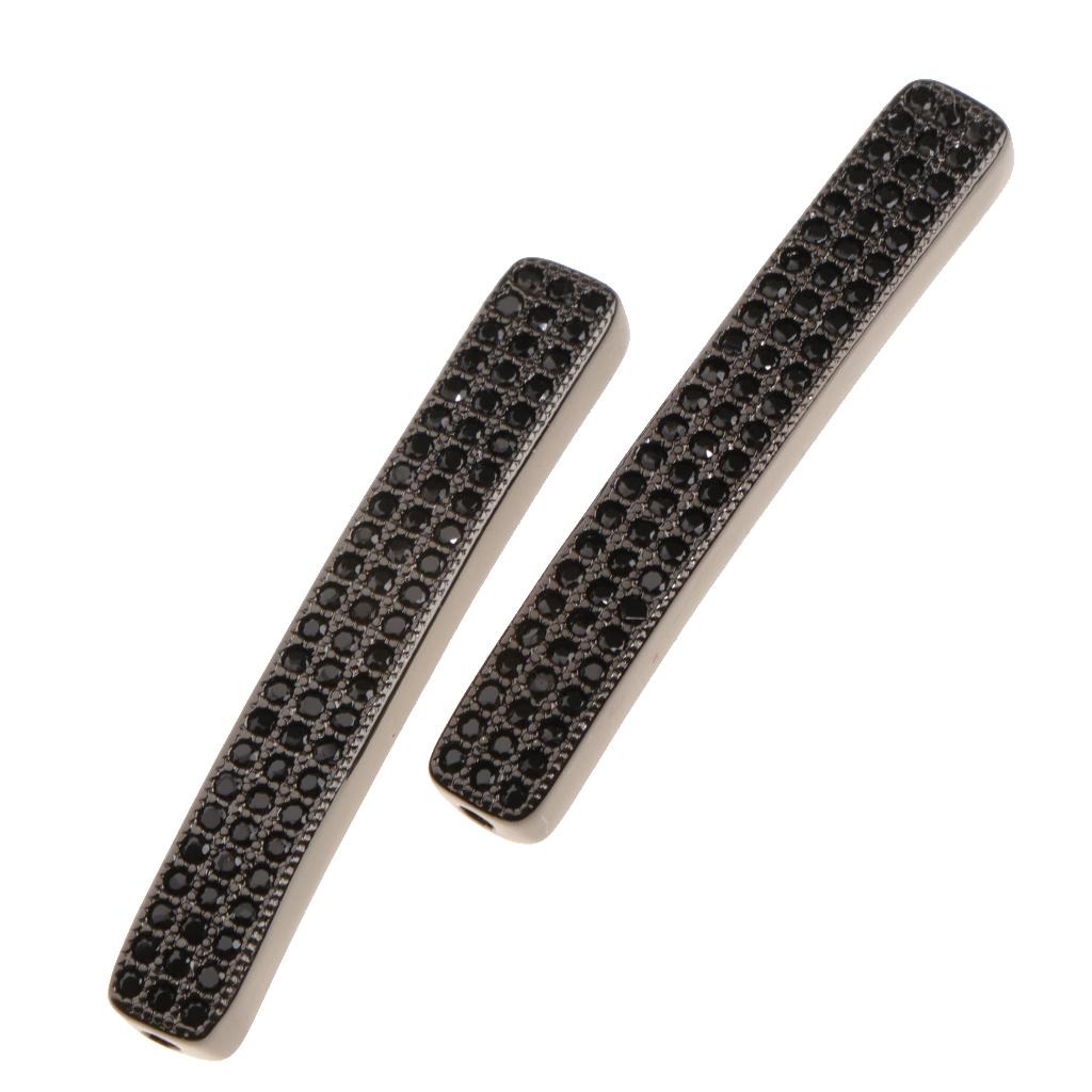 Maxbell Fashion Loose Long Flat Spacer Beads DIY Bracelet Black zircon
